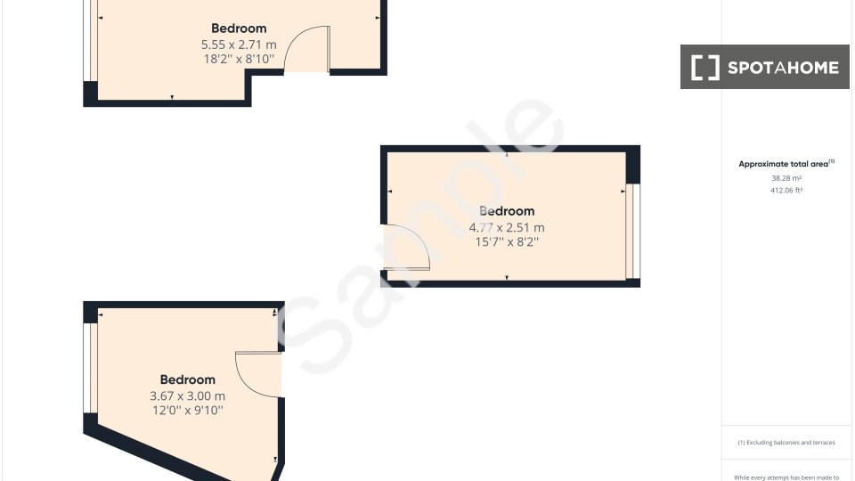 55 m2Bedrooms