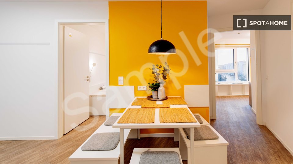 The room can be let out only for students and interns. People doing PhD can also apply. The flat was developed as a shared apartment concept. The individual rooms in the student residence are rented out with the following amenities: