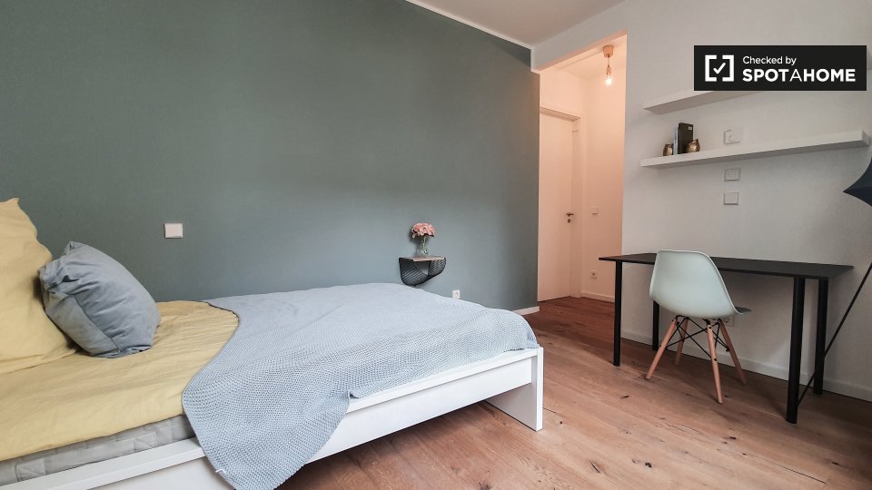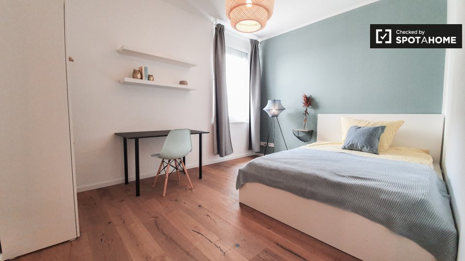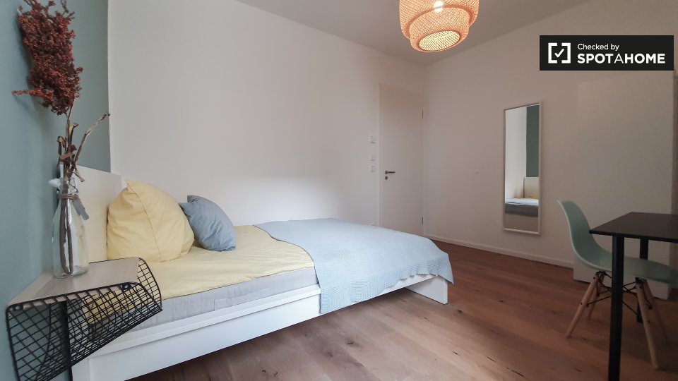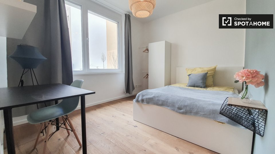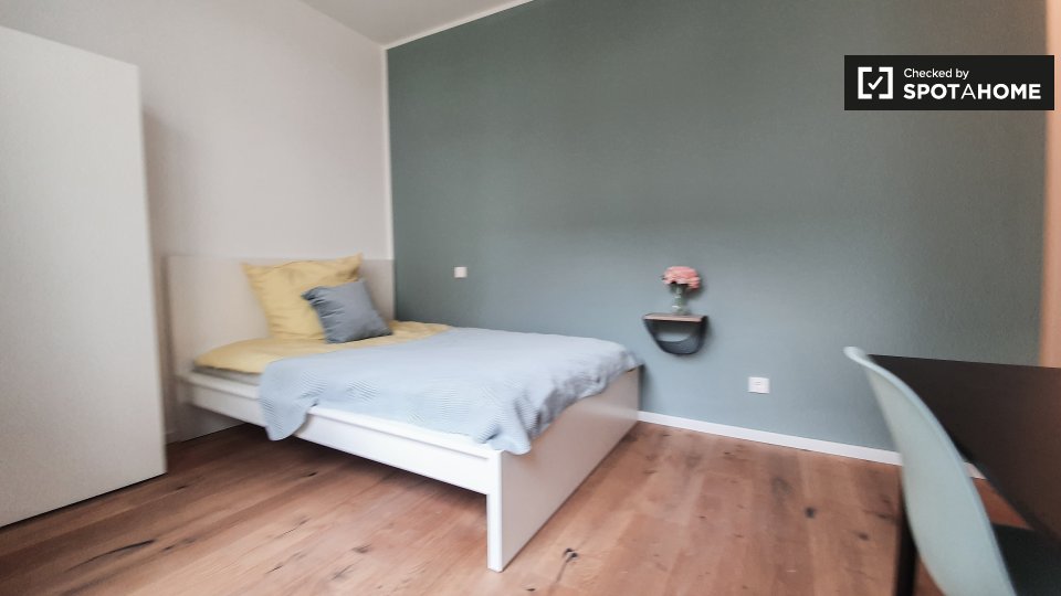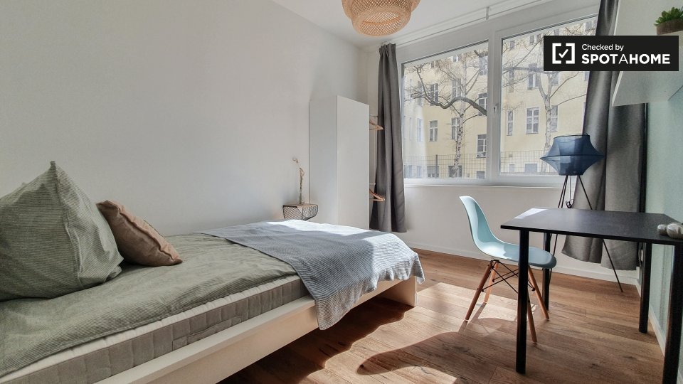 Pets not allowedNot allowedExperience comfortable living in this room available in a shared 4-bedroom apartment in Berlin. This exterior apartment is fully furnished with an equipped kitchen, common washer and dryer, and features a balcony for your leisure. All bills, including electricity, water, gas, and Wi-Fi, are included. Periodic cleaning is also available to ensure cleanliness and convenience. Verified by Spotahome, this apartment is ready to be your new home.
