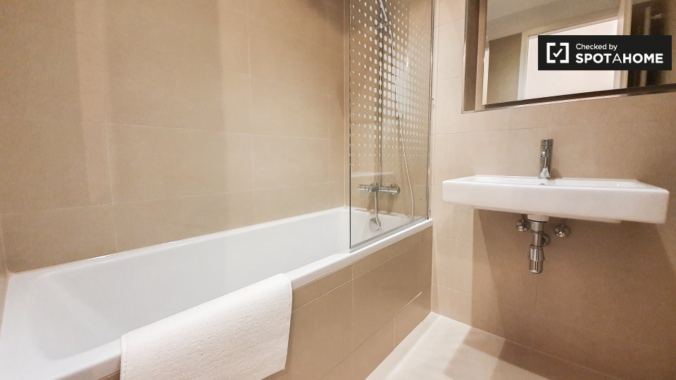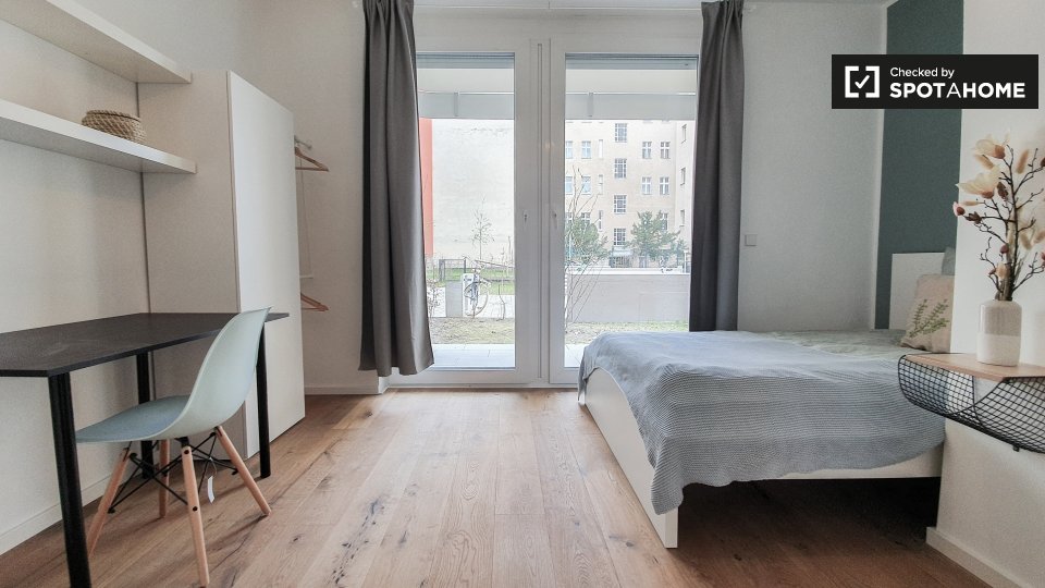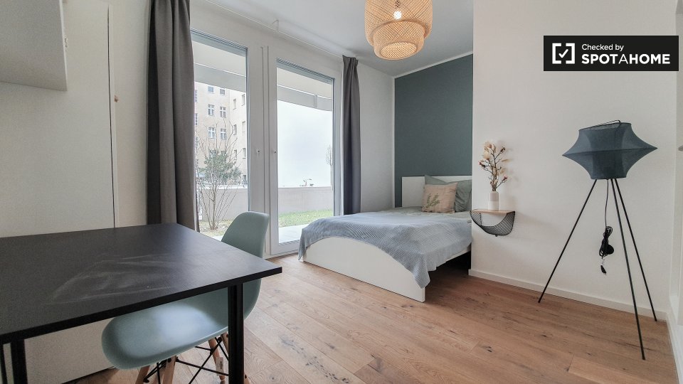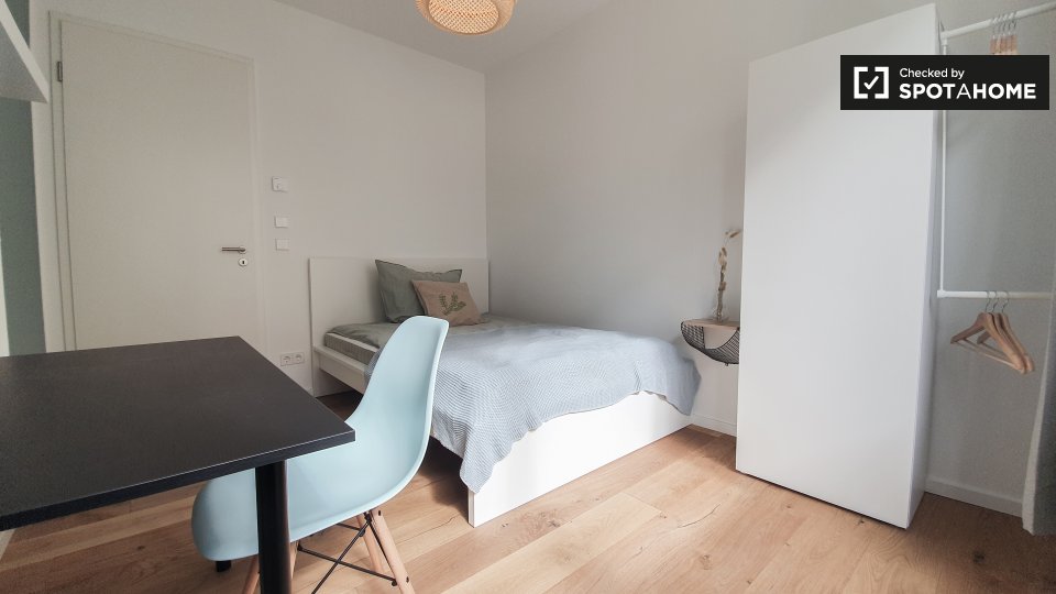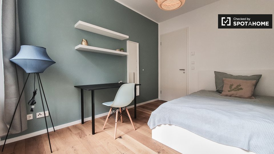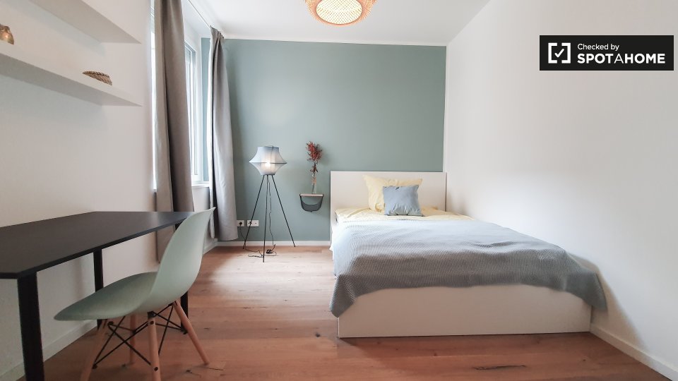 Pets not allowedNot allowedExperience comfortable living in this room available in a shared 4-bedroom apartment in Berlin. This exterior apartment is fully furnished with an equipped kitchen, common washer and dryer, and features a balcony for your leisure. All bills, including electricity, water, gas, and Wi-Fi, are included. Periodic cleaning is also available to ensure cleanliness and convenience. Verified by Spotahome, this apartment is ready to be your new home.