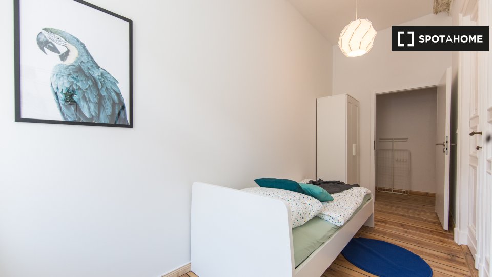 Pets not allowedNot allowedDiscover a fantastic shared living opportunity in Berlin. This 4-bedroom apartment is fully furnished and equipped with an equipped kitchen. Checked by Spotahome, ensuring quality and trustworthiness. All utilities such as electricity, water, gas, and wifi are included in the rental, providing convenience.