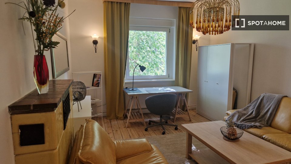 The property is on the ground floor with garden. Furnished apartment with **2 bedrooms** for rent on Schütte-Lanz-Straße.