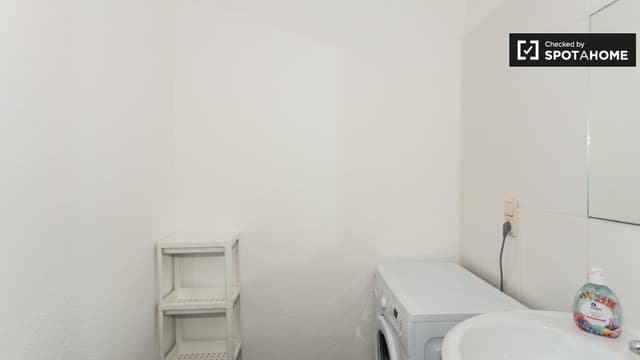 - There's a washing machine but no dryer – no probs, just set up a drying rack and you're good to go.