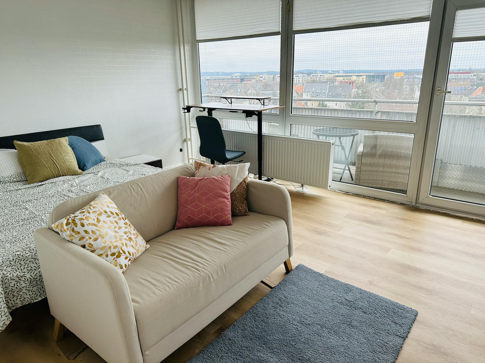 This room is 25 sqm, fully furnished, and ready to move in with just a suitcase. A private balcony and king-size bed (180 x 200 cm) provide both comfort and space.