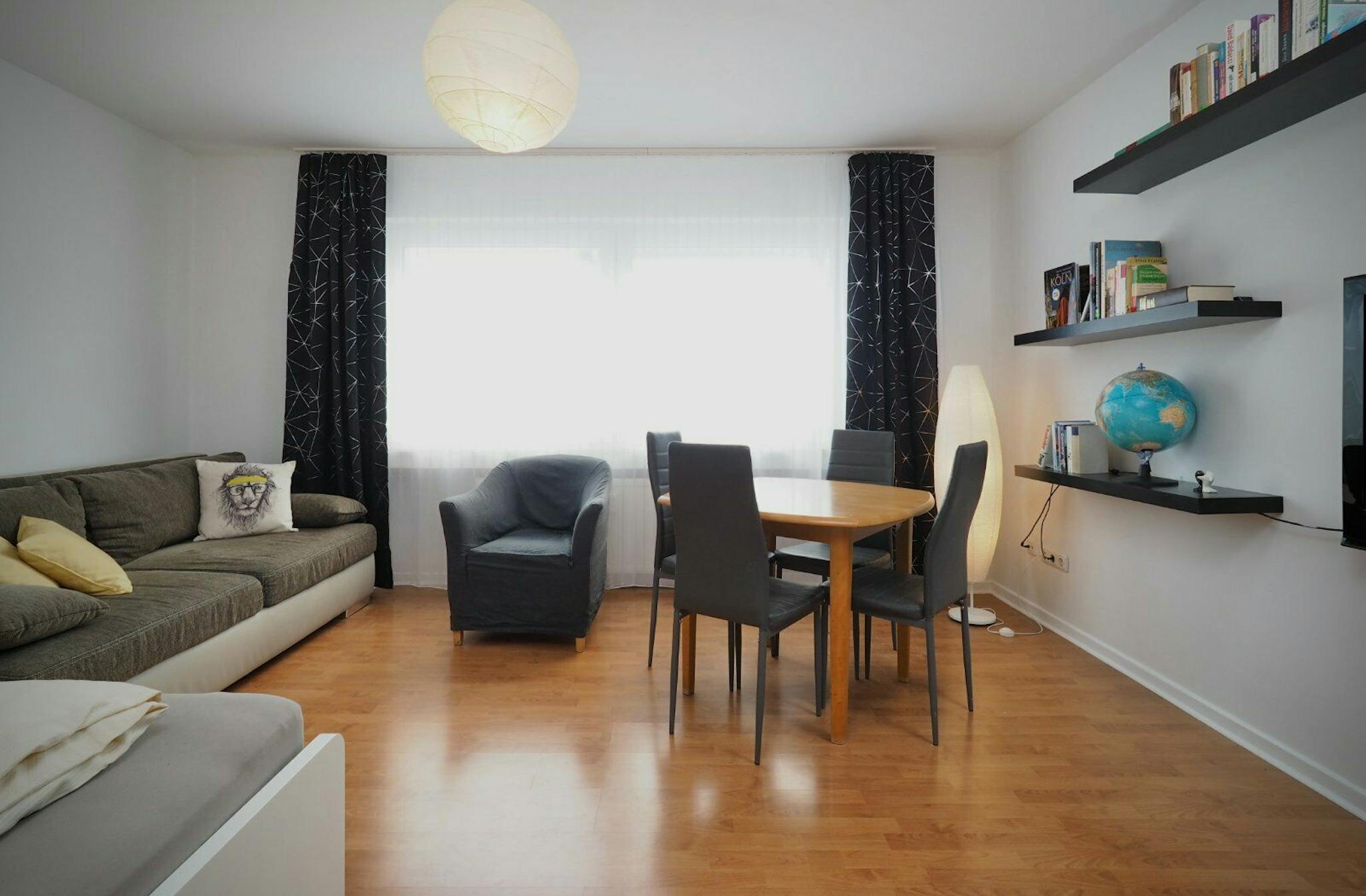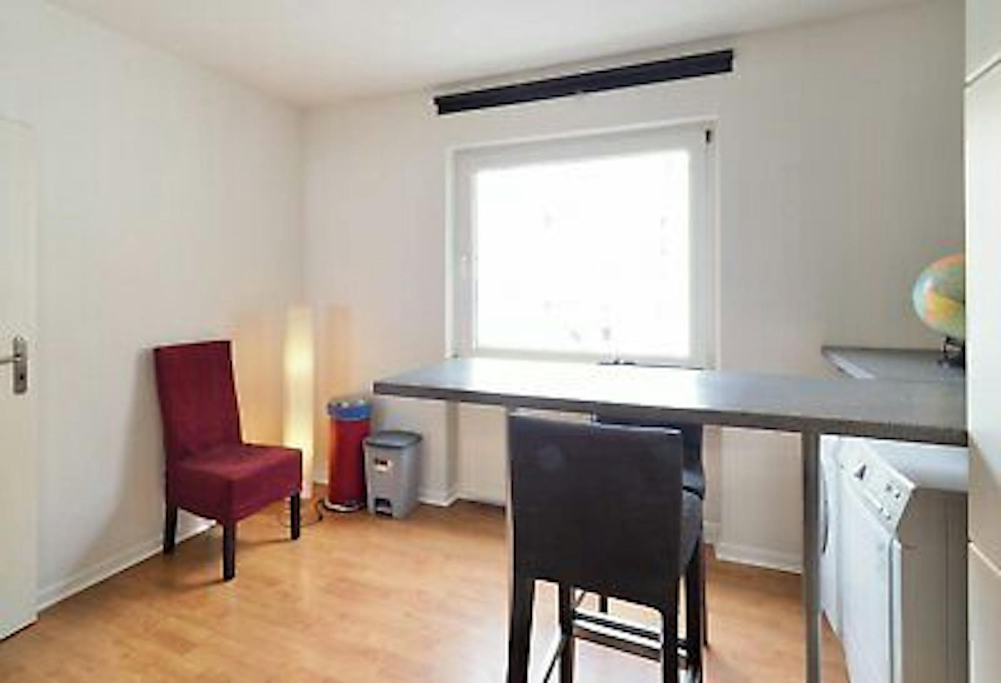 Diese voll möblierte Wohnung hat alles was man zum Wohnen braucht: voll ausgestattete Küche, Wohn-/Schlafzimmer mit bequemen Sitzgelegenheiten sowie ausreichendem Platz für Home-Office.