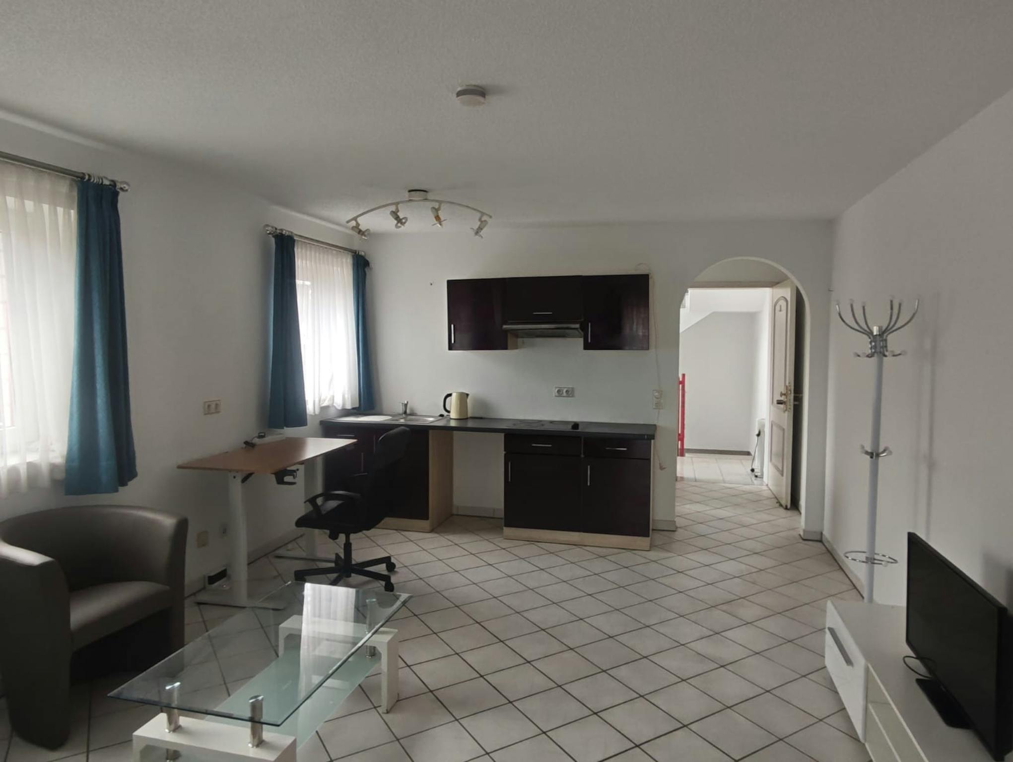 In der Wohnung gibt es offene Küche und Badzimmer zur Verfügung.