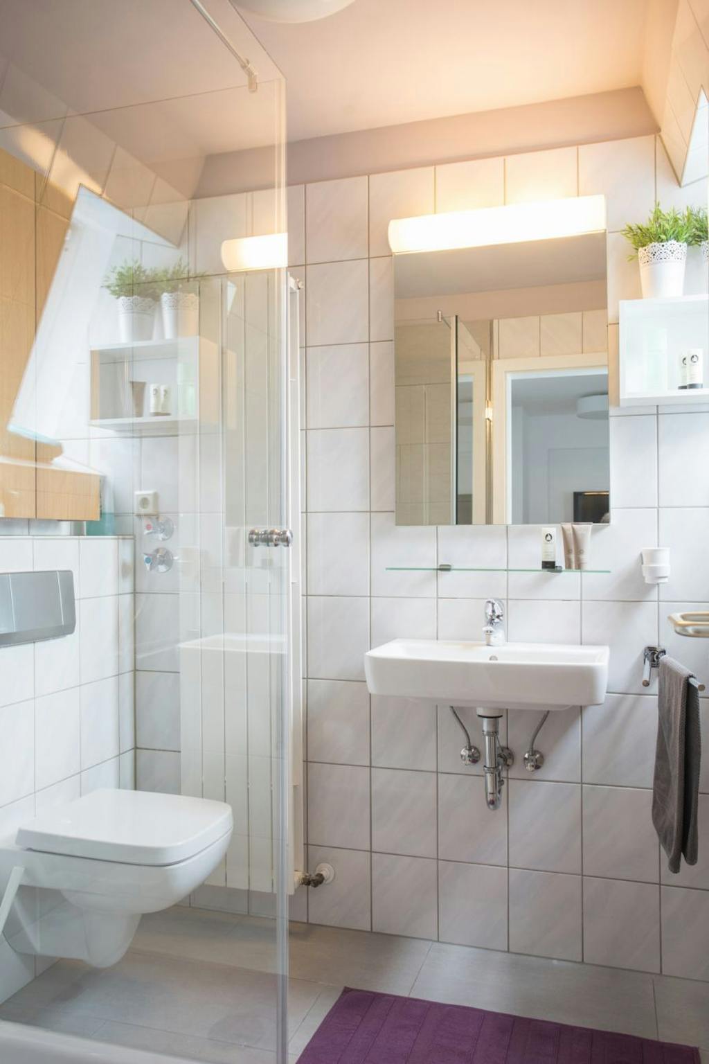 Non-SmokingNot allowedSpaciousness, a high ceiling and contemporary design create a feel-good atmosphere with a personal touch in this stylishly furnished apartment, leaving nothing to be desired. The studio consists of a living space/ bedroom equipped with a desk/dining table, a comfortable bed (size 0.90 m x 2.00 m) and a large flat screen TV (swivable). The studio is mostly parquet flooring, and offers a modern, open-plan kitchenette with refrigerator, ceramic cooktop, microwave, kettle and Nespresso coffee machine. The beautiful bathroom is flooded with natural light.