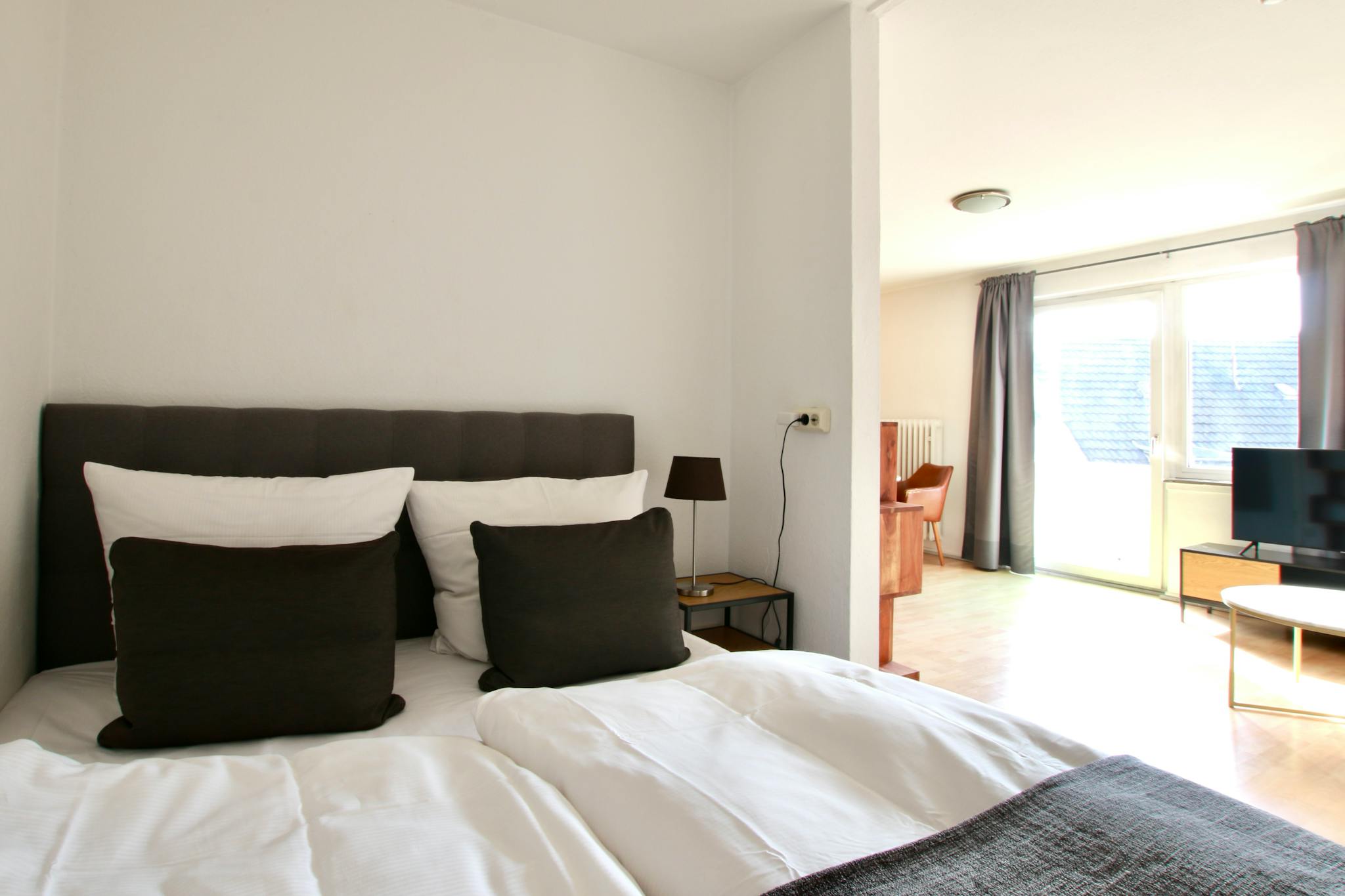 The apartment is located right next to the beautiful Rathenauplatz square and belongs to the Neustadt-Süd district. Named after the Latin Quarter in Paris due to its proximity to the University of Cologne, Kwartier Latäng is characterized by its liveliness and its multitude of restaurants, bars, and pubs. Shops for everyday needs are also located in the immediate vicinity. The green Rathenauplatz square on the other side of the street with its old trees invites you to linger; the green belt with its extensive green spaces is also just a few minutes' walk away. The apartment building is a 15-minute walk from Cologne's famous shopping streets around Neumarkt and about a 25-minute walk from the cathedral. The nearest stop is Zülpicher Platz, from where trams (lines 9, 12, 15) run to all important destinations in Cologne. The Cologne South regional train station is also less than a 5-minute walk away, with regional connections to Bonn/Koblenz, Düsseldorf, Eifel, etc.