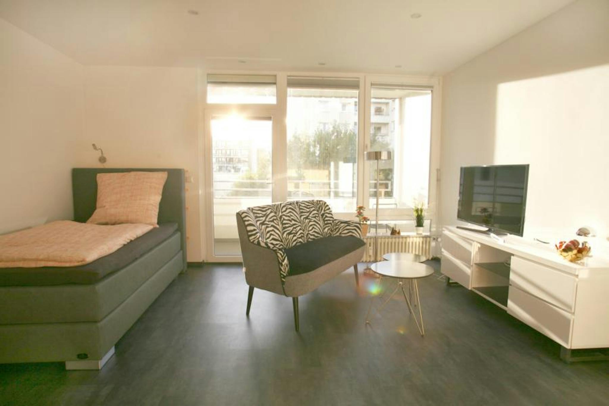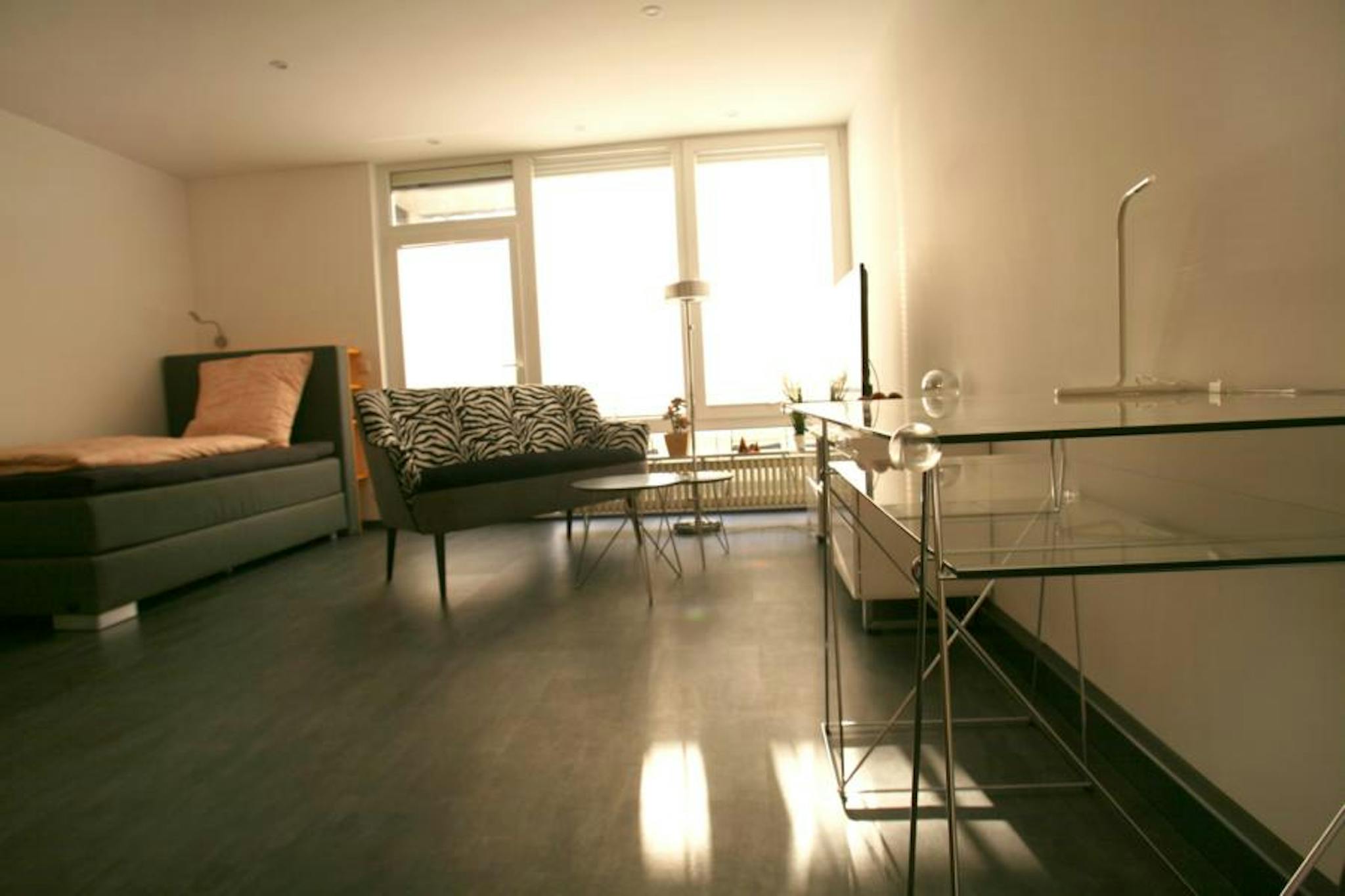 Non-SmokingNot allowedSonniges ruhiges Apartment mit Blick ins Grüne, Nähe AB-Dreieck Köln-West/Stadtwald/Sporthochschule; breite Fensterfront nach Westen.