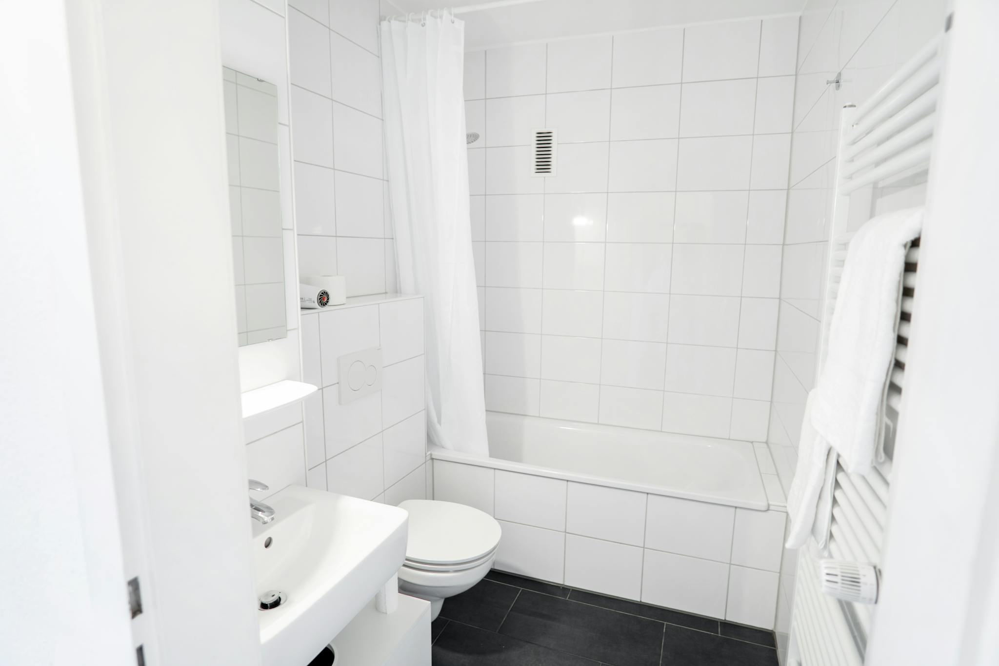 - Praktische Geräte wie Waschmaschine, Mikrowelle, Toaster, Wasserkocher und Nespresso-Kaffeemaschine