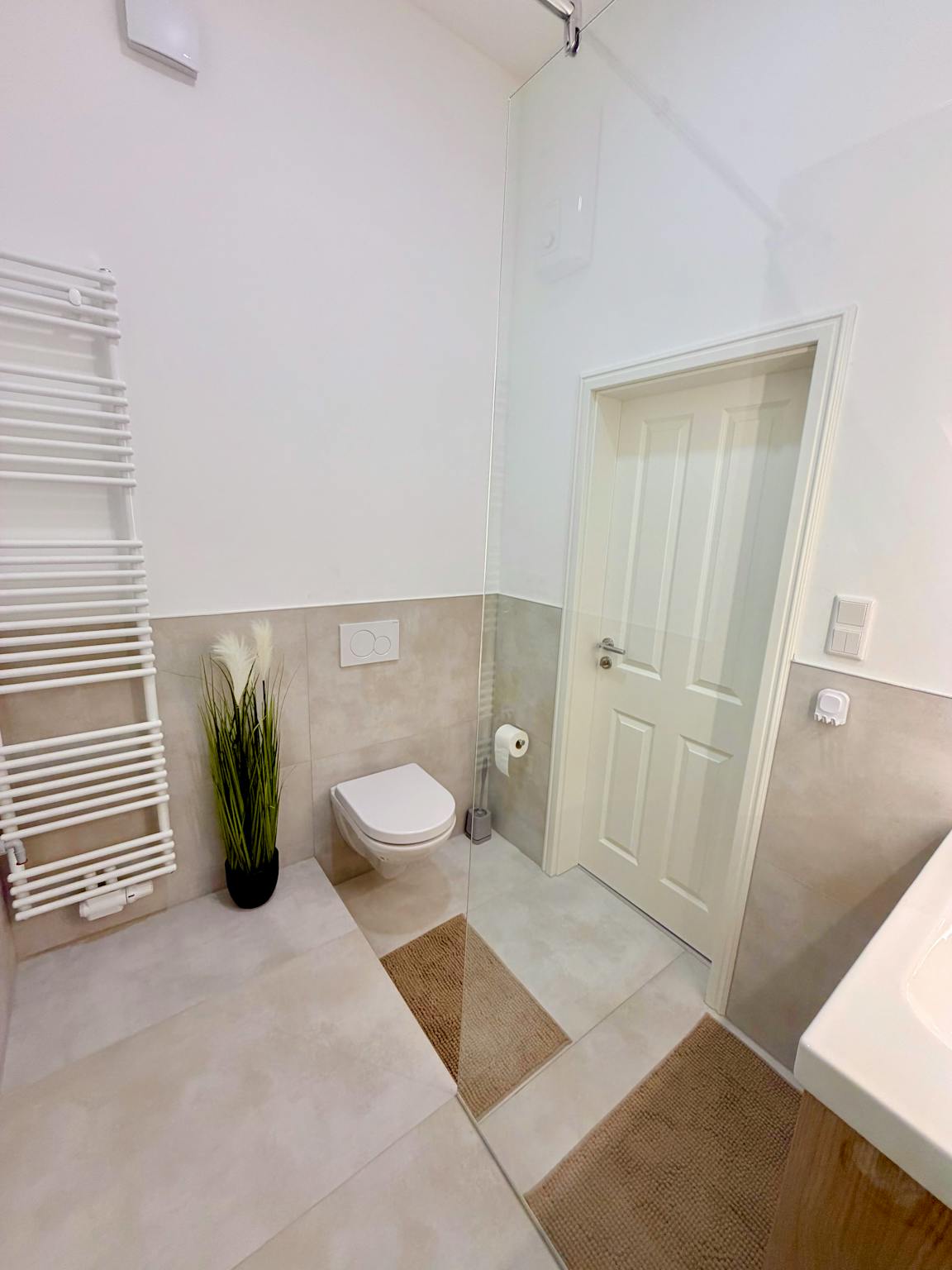 Das Zimmer ist Teil einer neu gegründeten 5er-WG in einer renovierten Wohnung. Sie profitieren von zwei modernen und frisch sanierten Bädern, die jeweils mit einer Dusche und einer Toilette ausgestattet sind. Damit wird der morgendliche Ablauf angenehm und stressfrei gestaltet.