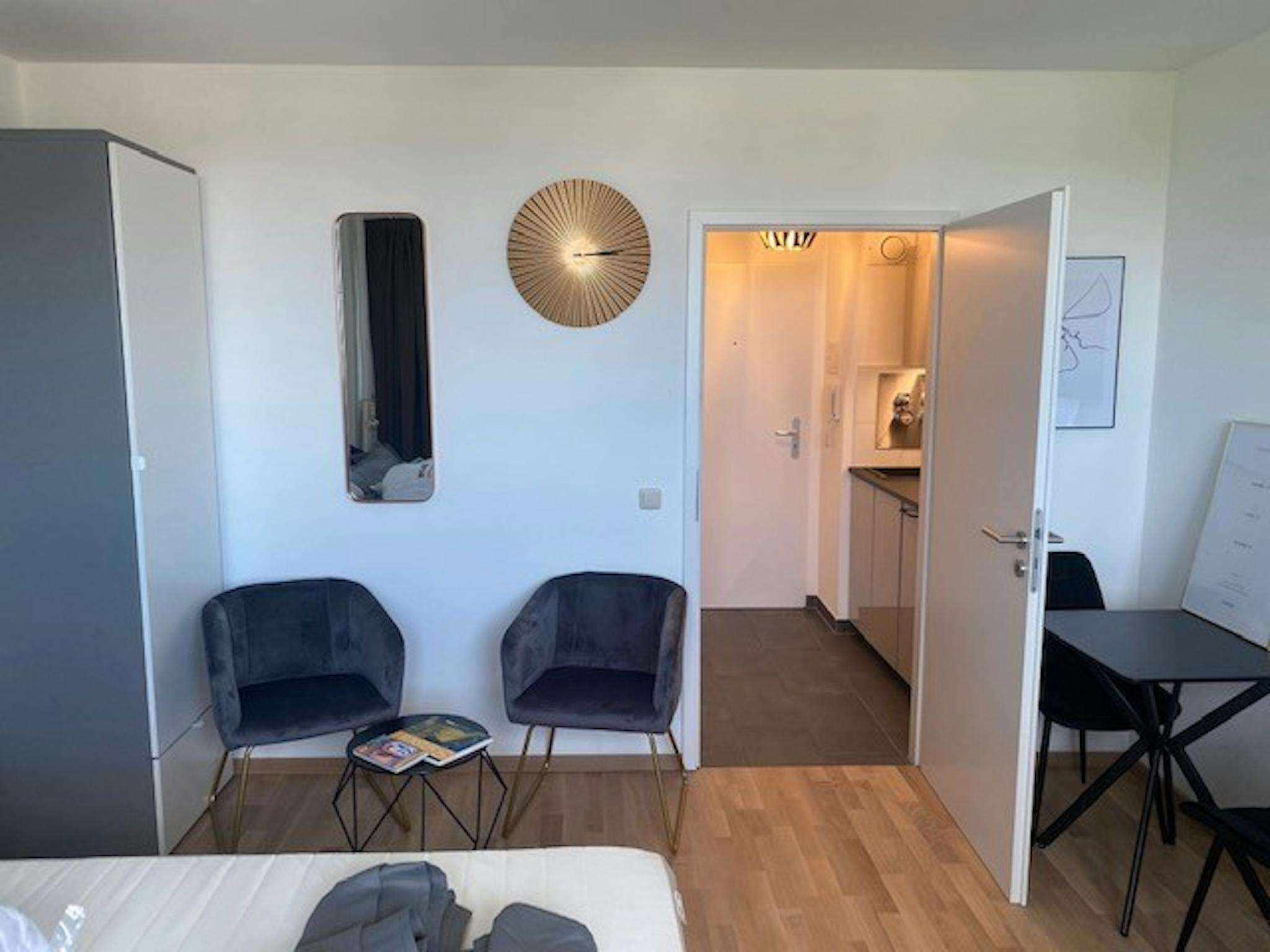 Non-SmokingNot allowedCharming City Apartment in Cologne Ehrenfeld This 23sqm gem combines urban chic with thoughtful living comfort. Upon entering the apartment, the elegant parquet flooring in the living area immediately catches the eye, creating a warm and cozy atmosphere. In contrast, the hallway, bathroom, and kitchen are equipped with high-quality tiles that convey a modern and easy-to-maintain ambiance. The like-new built-in kitchen leaves nothing to be desired and is equipped with modern appliances such as a fridge-freezer combination, stove, oven, microwave, coffee machine, kettle, and toaster. The living space impresses with designer furniture, a comfortable box spring bed, and a spacious 43-inch UHD Smart TV. Here, you can relax and unwind after a long day. The bathroom stands out with its walk-in rain shower and modern details. Practical amenities like a washing machine and a hairdryer complete the room's offerings. Effortless access is provided by the elevator in the building, and with conveniences like cable/satellite TV and DSL internet, all your needs are met. About the Location: Stolberger Straße in Ehrenfeld is a real highlight for those who love the lively Cologne. Ehrenfeld is known for its creative and dynamic atmosphere, characterized by culture, art, and a diverse gastronomy scene. From here, it's only a few steps to trendy cafes, boutiques, and cultural events. Thanks to excellent transportation connections, other Cologne neighborhoods and the main train station are easily accessible. An urban lifestyle is guaranteed here!