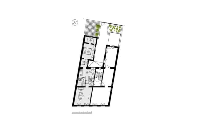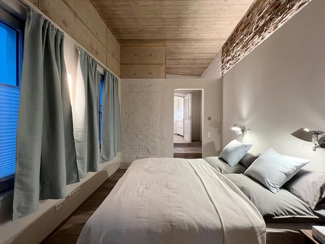This suite creates spatial experiences on several levels! It is located on the 2nd floor of an old ‘Gründerzeit’-building from the late 19th century. In historical building fabric, the apartment reveals contemporary architectural sophistication with intelligent spatial references, high-quality materials, elegant light and color concept and loving furnishings. In 2022, the suite was carefully refurbished, incorporating design, architectural history, building material and health criteria. The suite stretches from the front, facing the street, to the back house – the ‘Hinterhaus’ – and has own terrace.