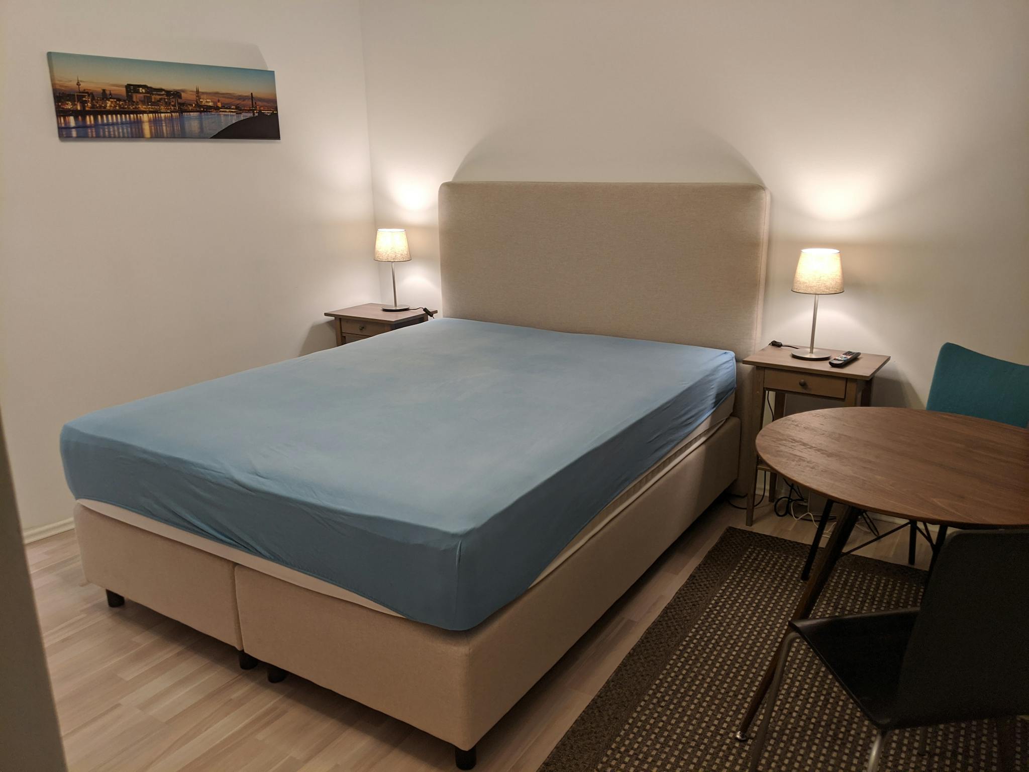 Freshly renovated and newly furnished studio apartment with a comfortable spring mattress hotel bed 160 x 200 cm, a studydesk, dining table, big closet. There is also a newly renovated modern bathroom and a new kitchen. The apartment offers everthing you need for a short or long stay in Cologne for business or pleasure. A bunkbed with 120x200 cm can host one or two additional persons.