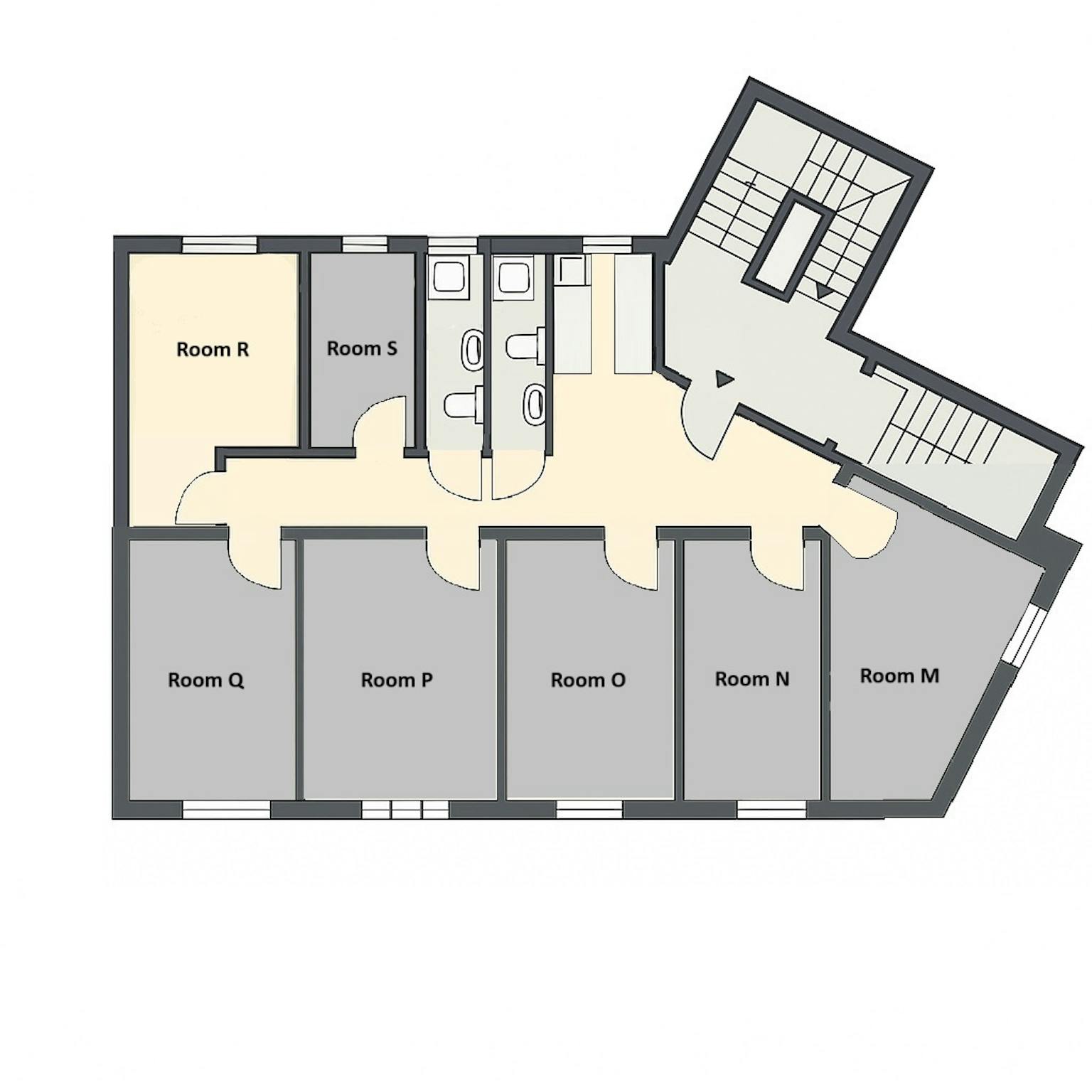 The beautifully bright and tastefully furnished bedroom—labeled 'Room R' on the floor plan—is ready for you. The room includes: