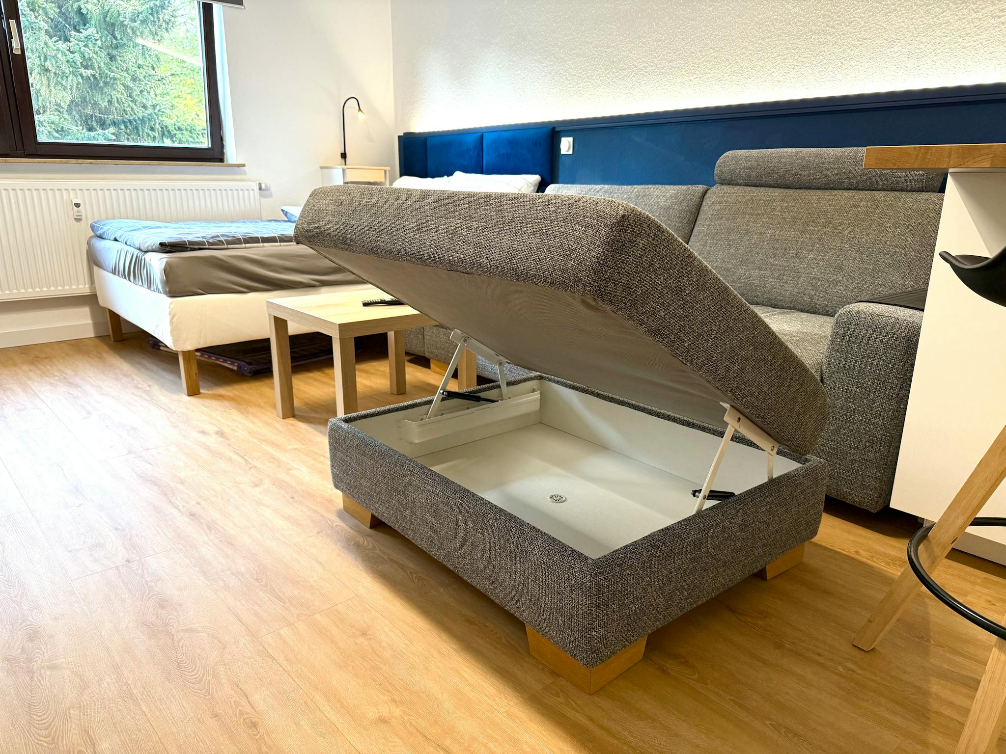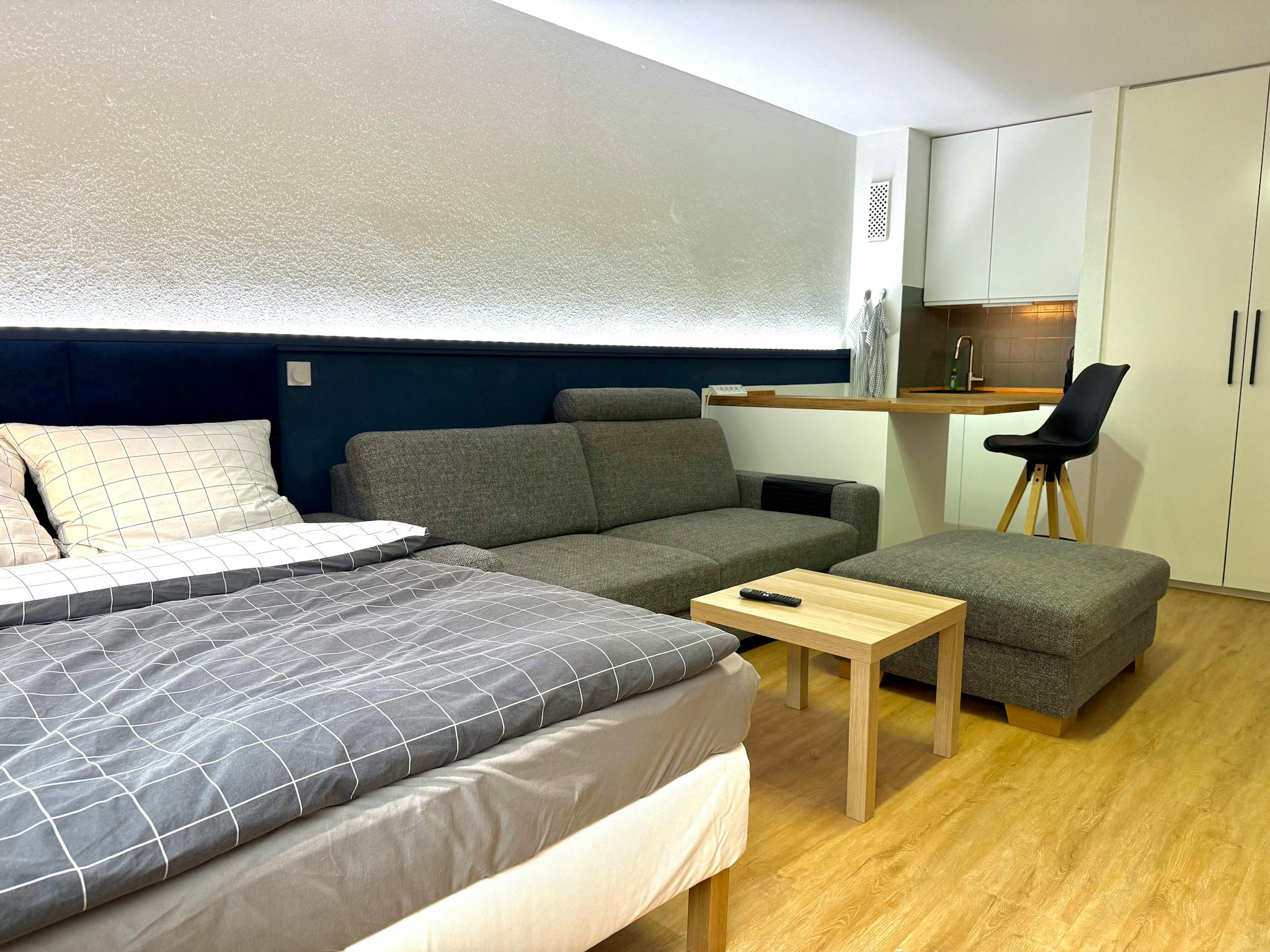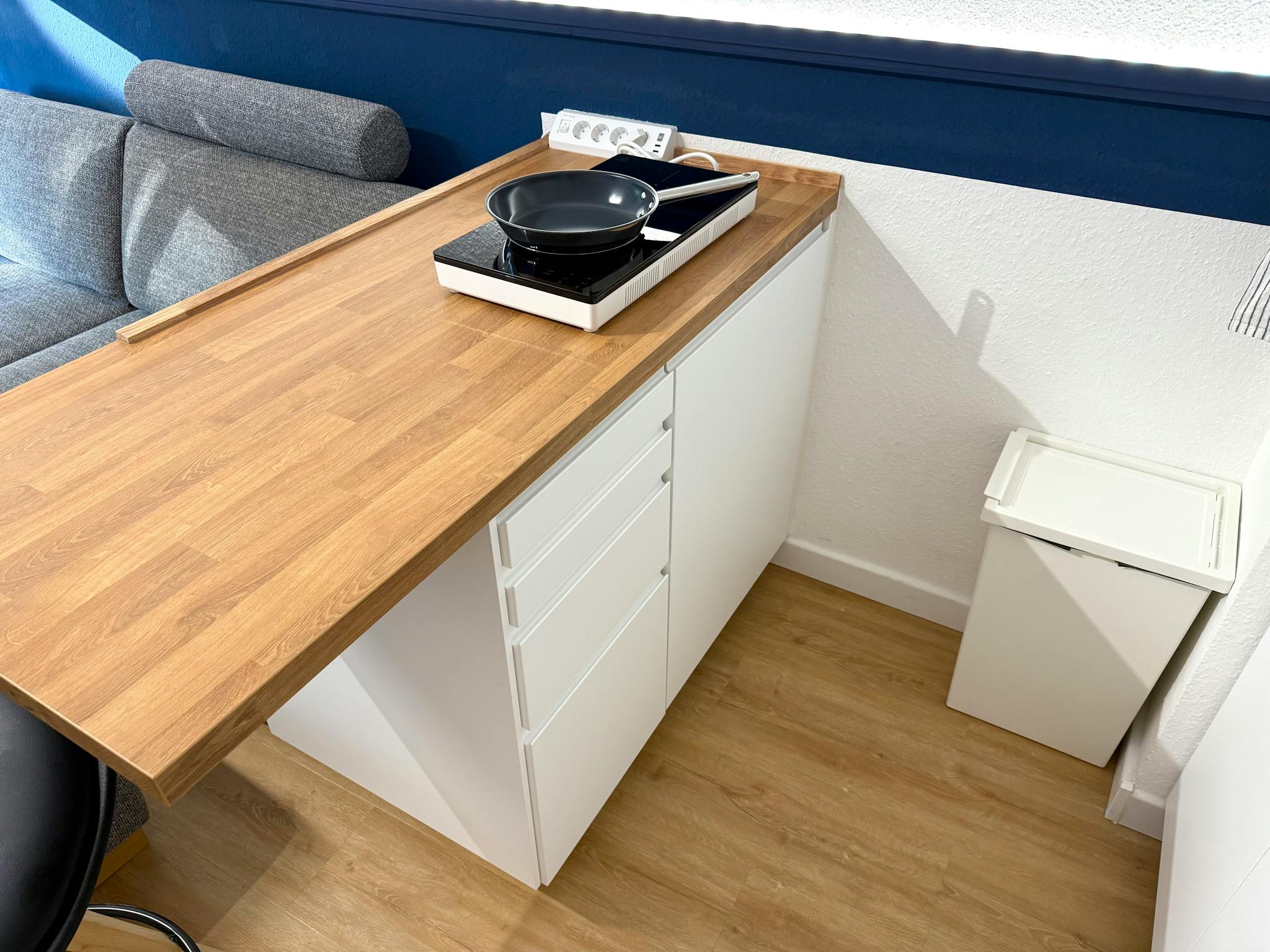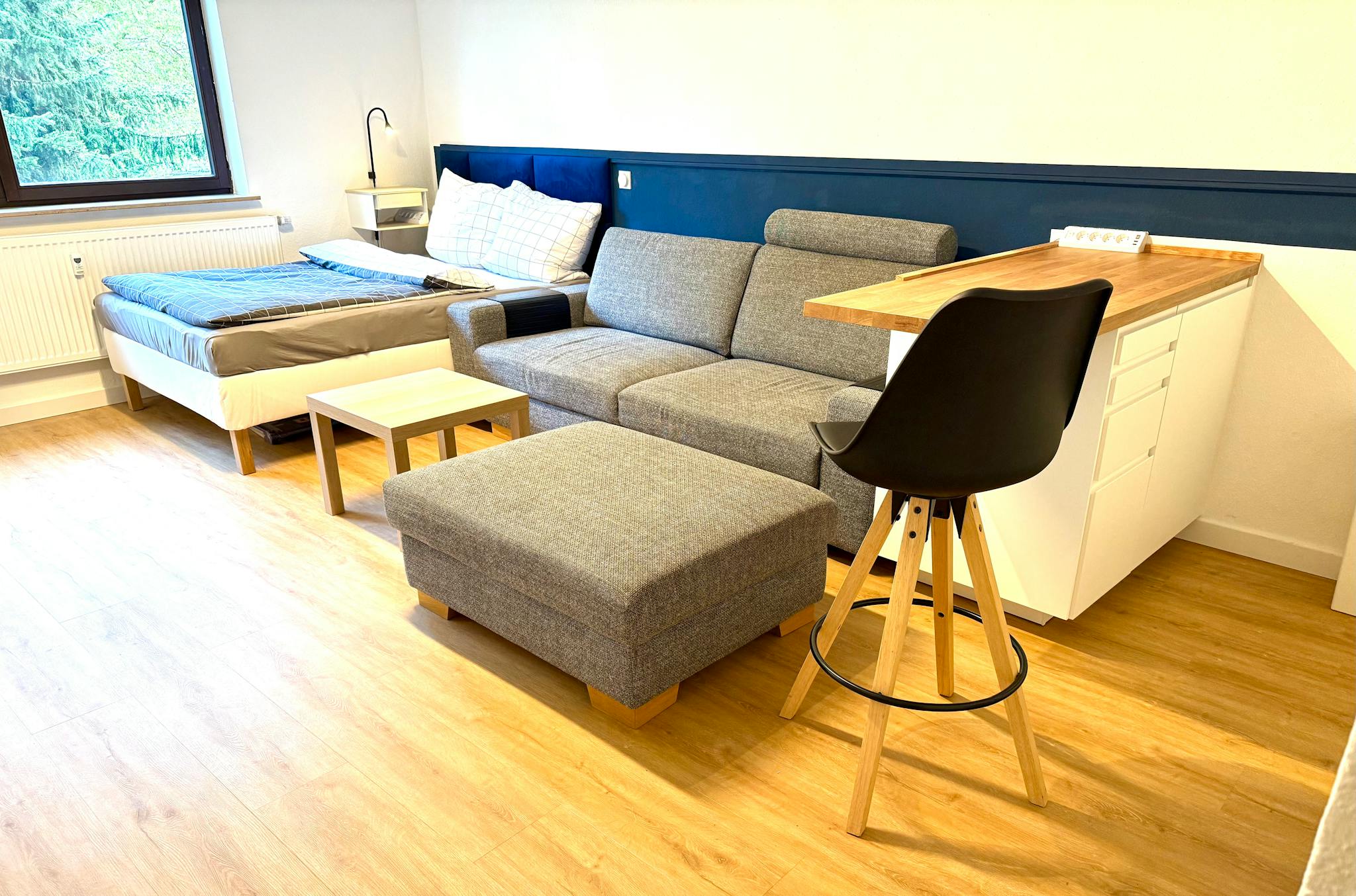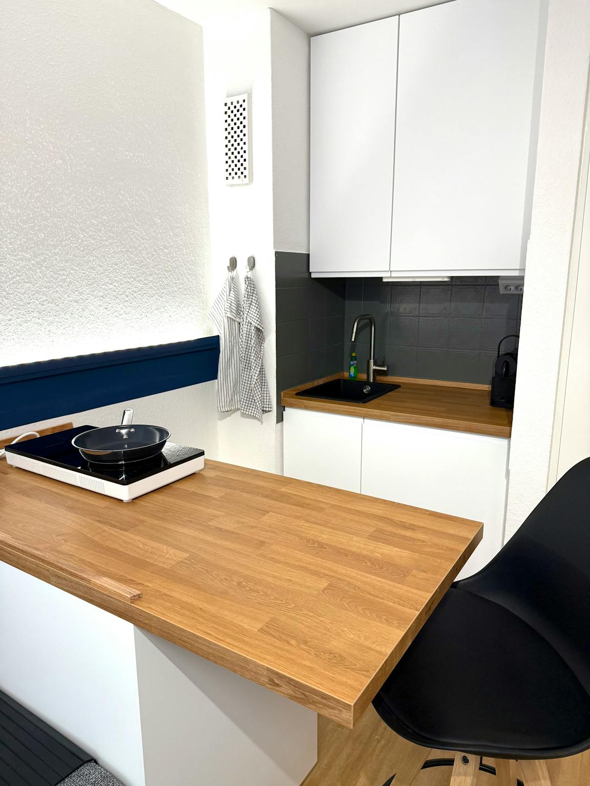 Non-SmokingNot allowedThis one-room apartment in Cologne Mülheim offers modern living comfort on 32 sqm, located on the second floor of an apartment building and facing a quiet inner courtyard. The open layout combines living, sleeping, and kitchen areas, creating a spacious atmosphere. The high-quality fitted kitchen is equipped with an induction cooktop, a large dishwasher, and a Miele washing machine. Thanks to fast internet, the apartment is also ideal for home office or streaming.