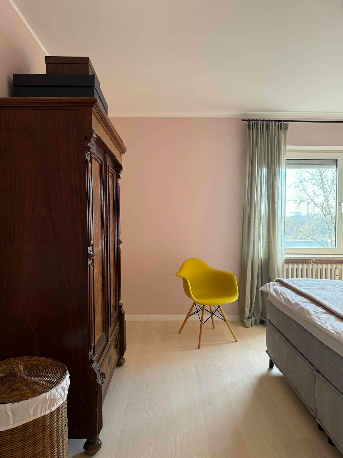 Ab sofort erwartet Sie eine außergewöhnliche Wohnung in erster Reihe zum Rhein: 70 m2 im 4. Obergeschoss eines gepflegten Hauses (Baujahr 1966) – frisch renoviert, stilvoll möbliert und mit einem unvergleichlichen Ausblick.