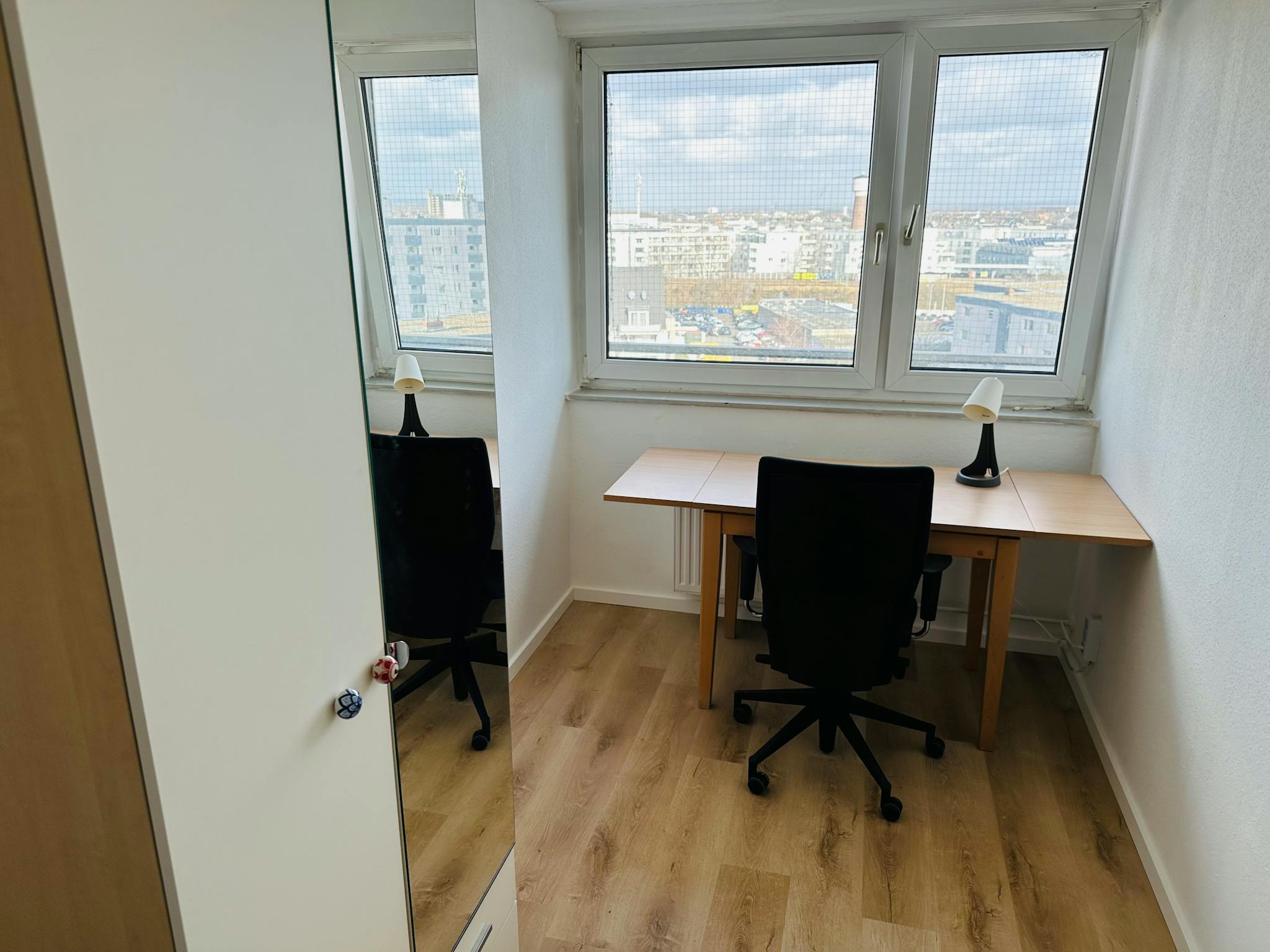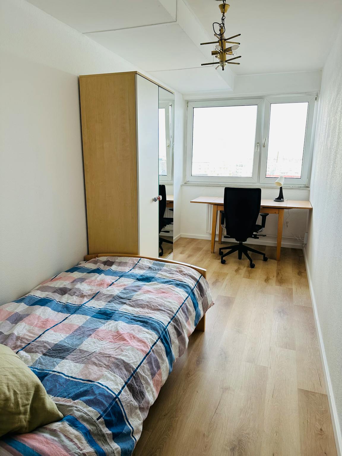 The 10 sqm. room is fully furnished, one could move in just with a suitcase.