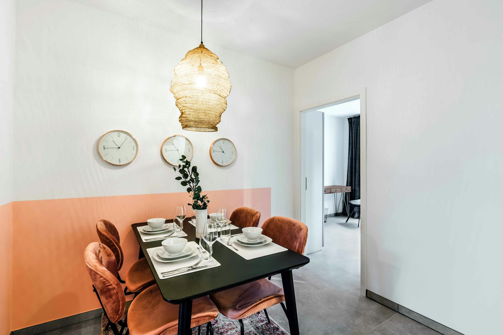 Super centrally located in Colognes heart and proximity to the River Rhine and the popular neighborhood of the Neusser Straße. The lively and hip district offers everything for the heart against hunger and has the typical Cologne spirit with shopping, cafes, restaurants, bars, and nightclubs.