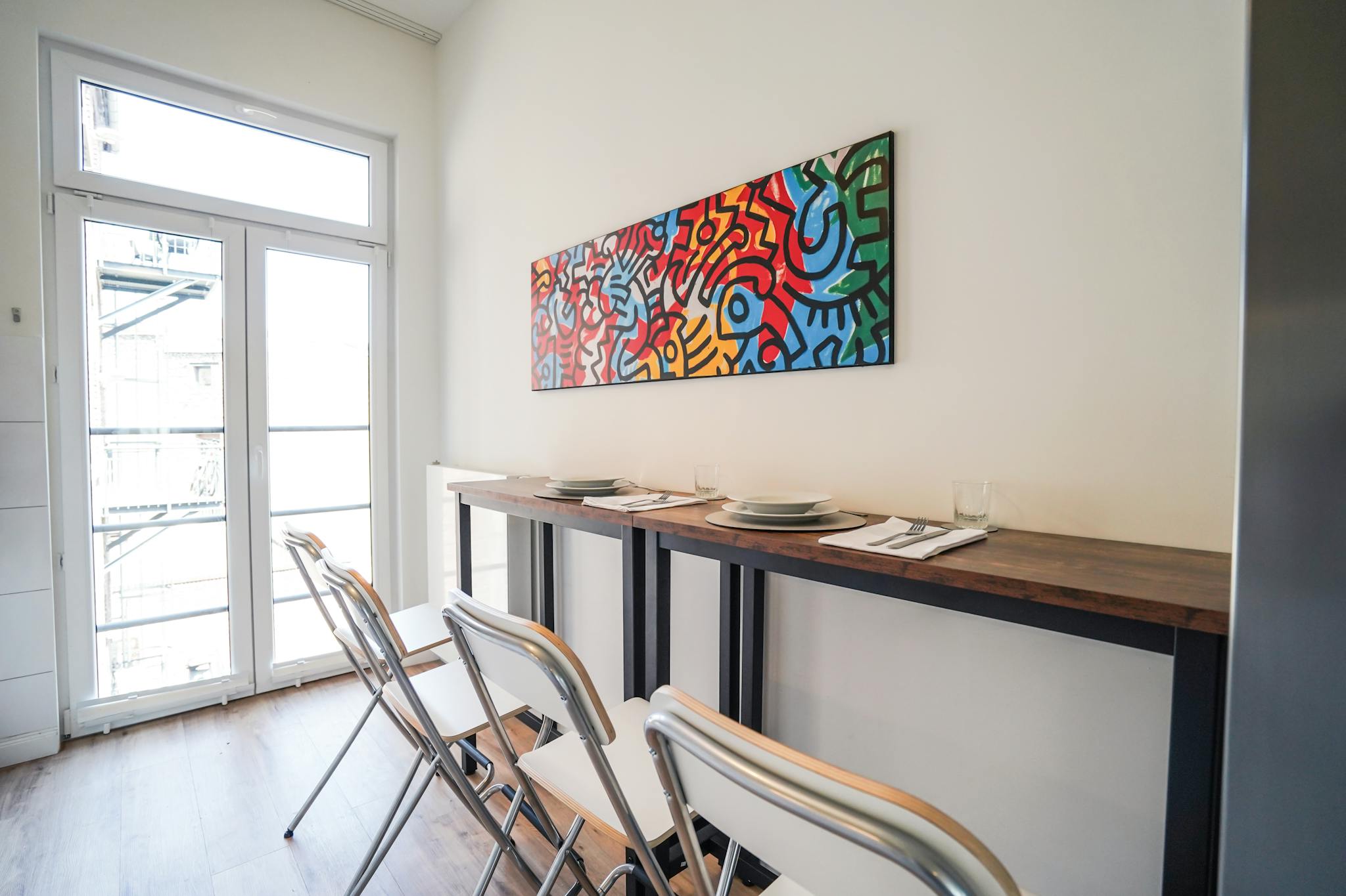 Your room is equipped with a loft bed and is fully furnished with a sleeping-sofa, desk and a cabinet among others.