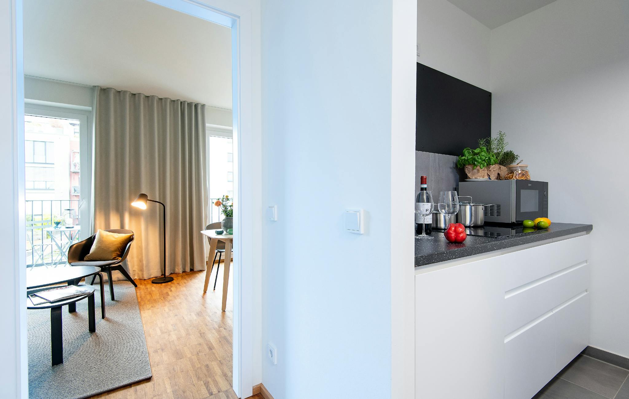 Im Mietpreis sind Strom, Heizung, Wasser, WLAN, die Nutzung der Waschmaschine sowie der Zugang zu einem Fitnessstudio im benachbarten Hotel bereits enthalten. Einzig der Rundfunkbeitrag ist vom Mieter selbst zu tragen.