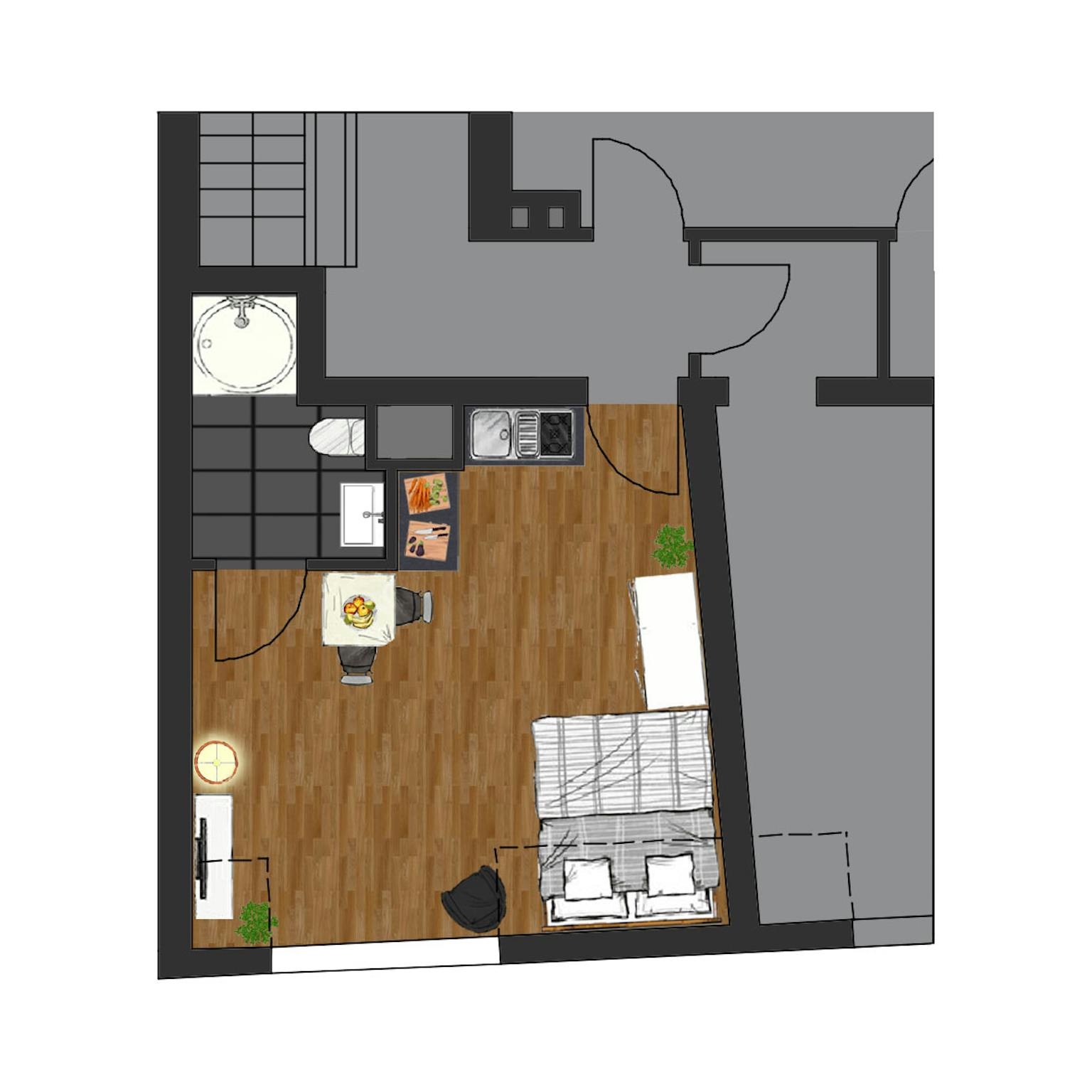 Das Apartment ist ansonsten löffelfertig eingerichtet.