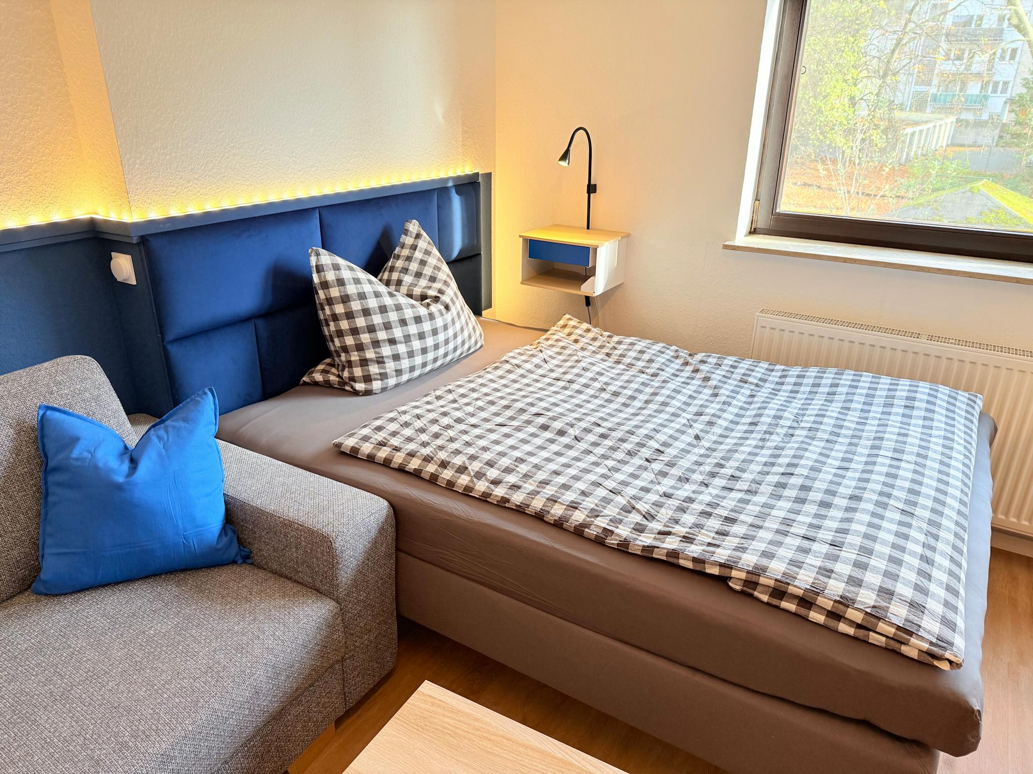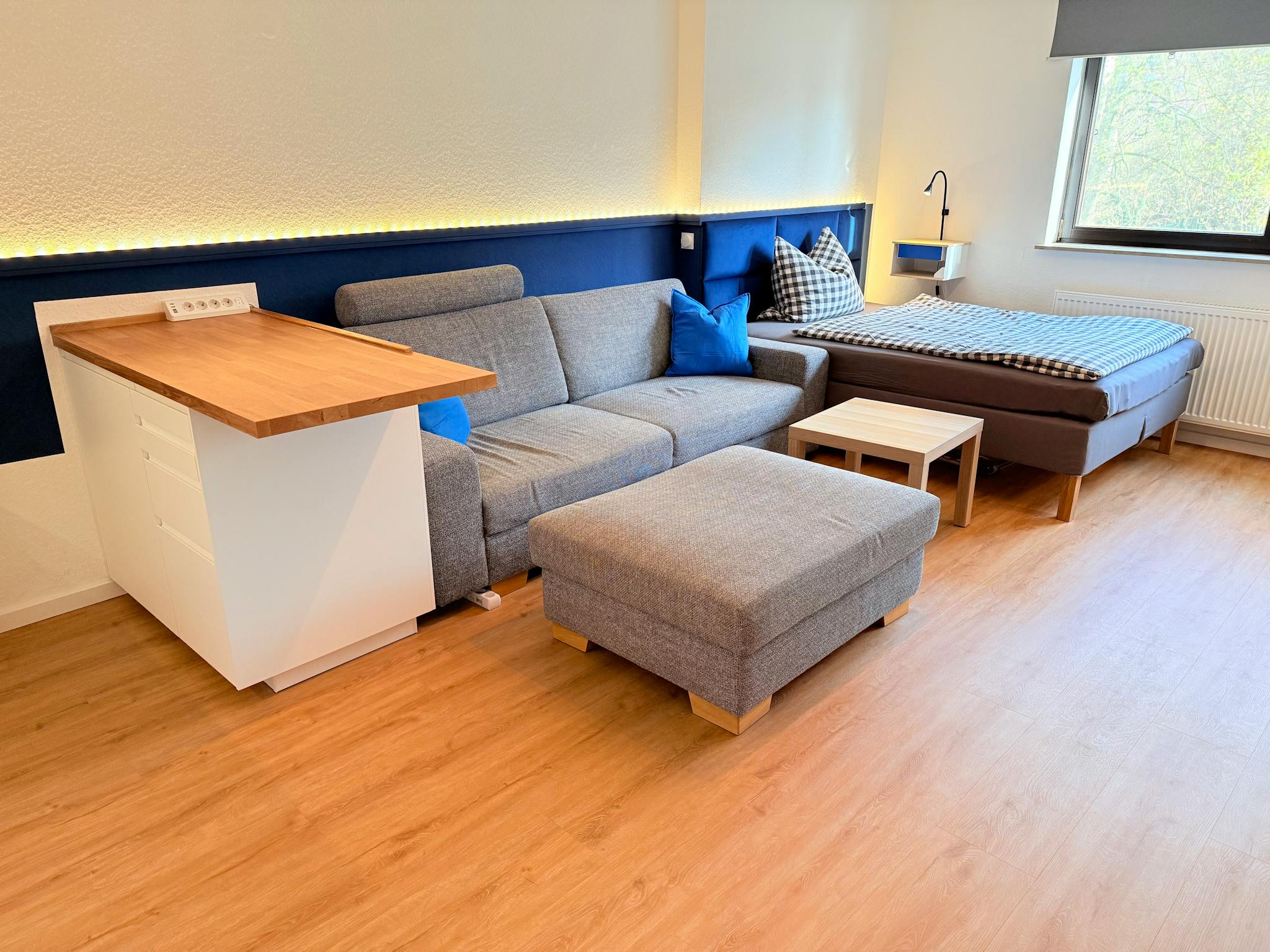 Non-SmokingNot allowedThis one-room apartment in Cologne Mülheim offers modern living comfort on 32 sqm, located on the second floor of an apartment building and facing a quiet inner courtyard. The open layout combines living, sleeping, and kitchen areas, creating a spacious atmosphere. The high-quality fitted kitchen is equipped with an induction cooktop, a large dishwasher, and a Miele washing machine. Thanks to fast internet, the apartment is also ideal for home office or streaming.