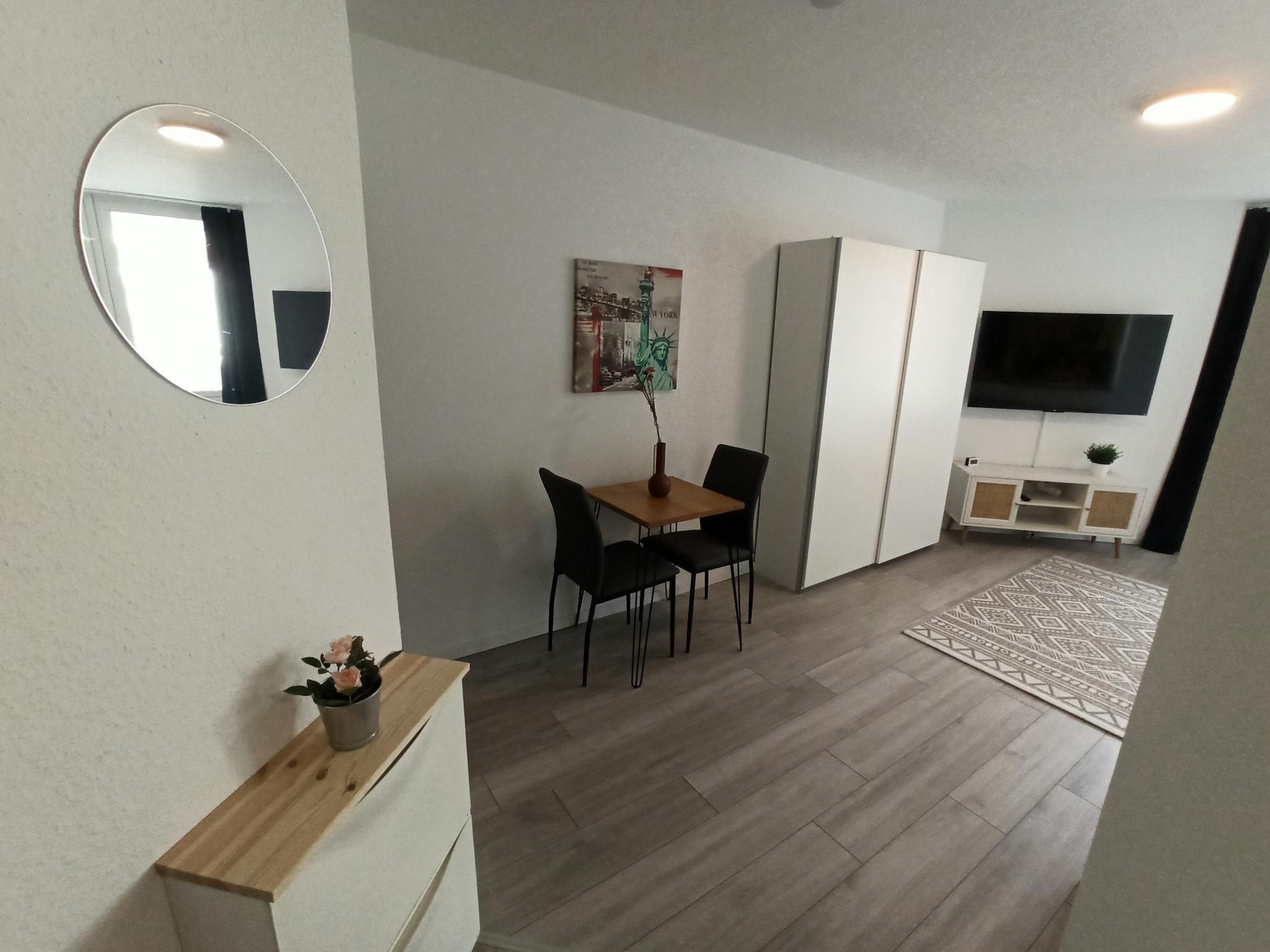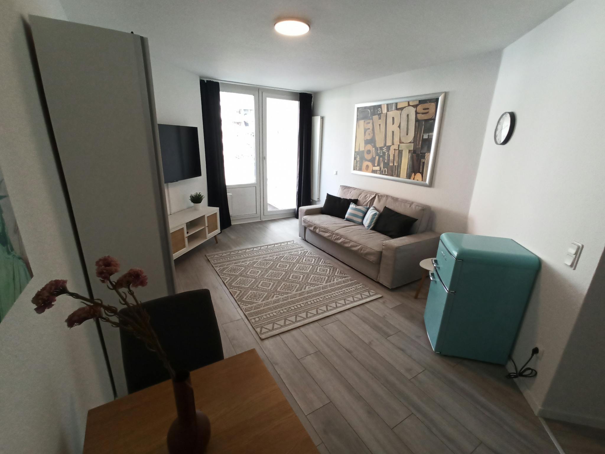 Non-SmokingNot allowedprivate Apartment: Beautiful, cozy and completely newly renovated apartment with large balcony. Completely and high-quality equipped with new Nobilia kitchen with dishwasher, combi oven (microwave, convection oven, grill), 2-zone induction hob, coffee machine, toaster, kettle and all necessary cooking utensils. 55 inch Flat Smart TV with Netflix, Disney+ etc (own subscription required). 100mbit highspeed internet WIFI. Washing machine and dryer are available in the building (coin-operated)
