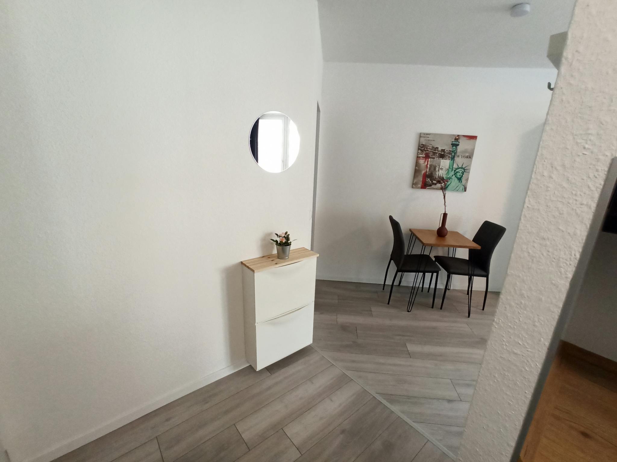 Wohnung: Schöne, gemütliche und komplett neu renovierte Wohnung mit großem Balkon. Komplett und hochwertig ausgestattet mit neuer Nobilia Küche mit Spülmaschine, Kombiofen (Mikrowelle, Heißluftofen, Grill), 2 Zonen Induktion Kochfeld, Kaffemaschine, Toaster, Wasserkocher sowie alle nötigen Kochuntensilien. 55 Zoll Flat Smart TV mit Netflix, Disney+ etc (eigenes Abo erforderlich). 100mbit Highspeed Internet WIFI. Waschmaschine und Trockner sind im Gebäude verfügbar (Münzautomaten)