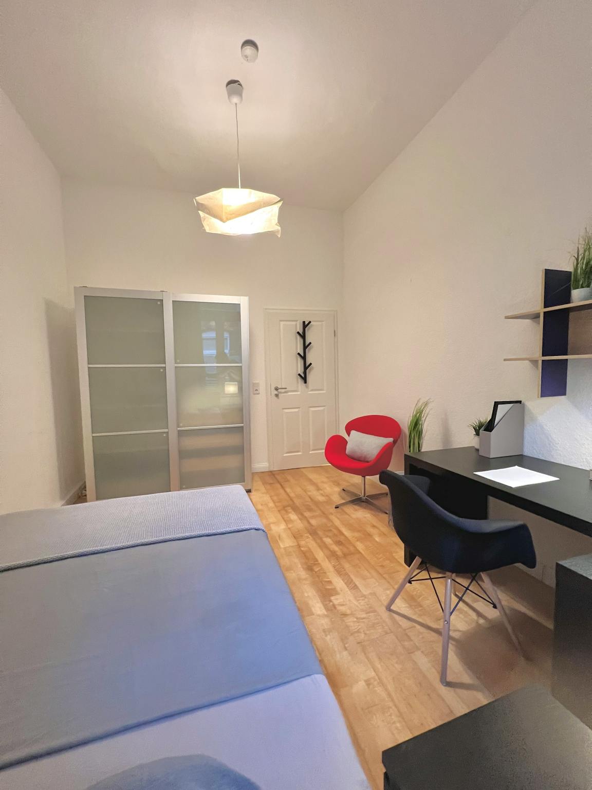 Herzlich willkommen in Ihrem neuen, hellen WG-Zimmer! Dieses großzügige Zimmer überzeugt mit seinem klassischen Altbau-Charme: Hohe Decken und große Fenster sorgen für ein freundliches, lichtdurchflutetes Ambiente. Das Zimmer trägt die Bezeichnung "b" und bietet Ihnen eine einladende Atmosphäre zum Wohlfühlen.