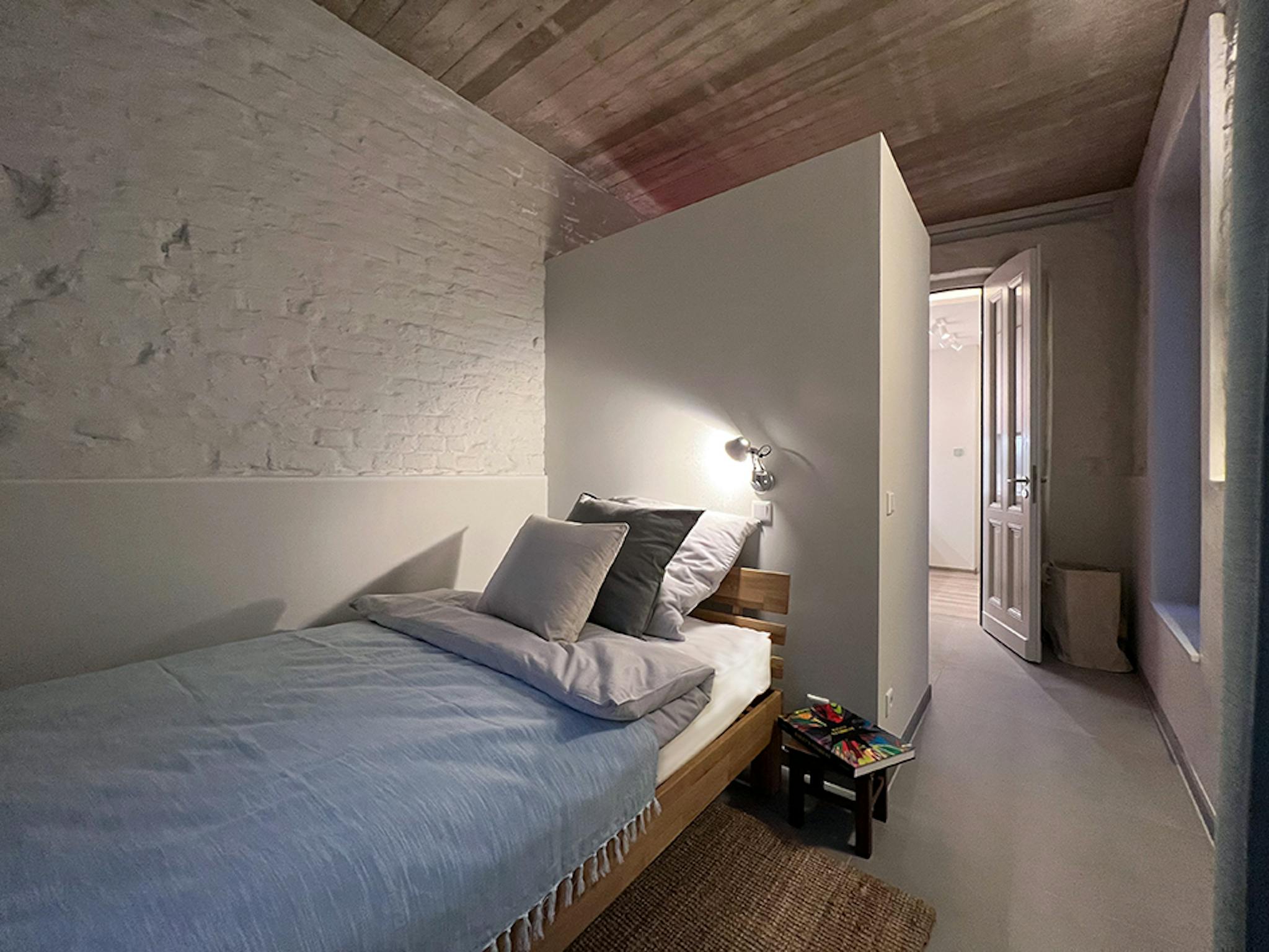 This stylish suite is located on the 1st floor of an old Gründerzeit apartment building from the late 19th century. In historical building fabric, the apartment reveals contemporary architectural sophistication merged with modern spatiality, high-quality materials, an elegant light and color concept and loving furnishings. In 2022, the suite was carefully refurbished, incorporating design, architectural history, building material, and health criteria. The suite has rooms in the front house facing the street and in the back house– the 'Hinterhaus.'