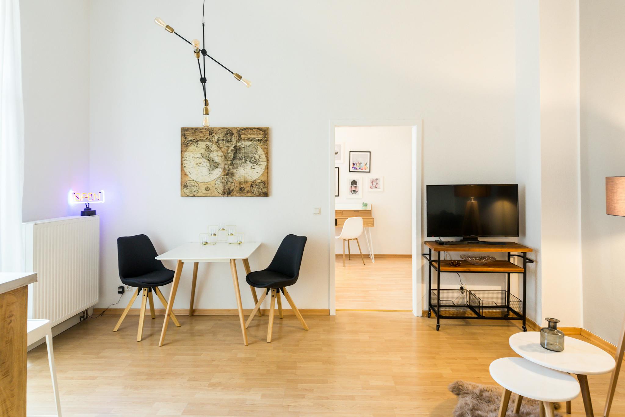 Diese sonnendurchflutete Wohnung ist eine urbane Oase mit viel Platz zum Ankommen und Entspannen. Der Einrichtungsstil ist modern-bohemian mit Vintage-Elementen, alles ist neu und hochwertig. Stylisch, gemütlich, mit hohen Decken und Hinterhof-Flair. Die Wohnung befindet sich im 1 OG. Die Loggia ist zum Innenhof ausgerichtet. Es fallen für Sie keine zusätzlichen Kosten an, alle Betriebs- und Heizkosten - auch Internet und Strom - sind in der Warmmiete von 1.390 € enthalten. (Sorgenfreie All-inclusive Miete)