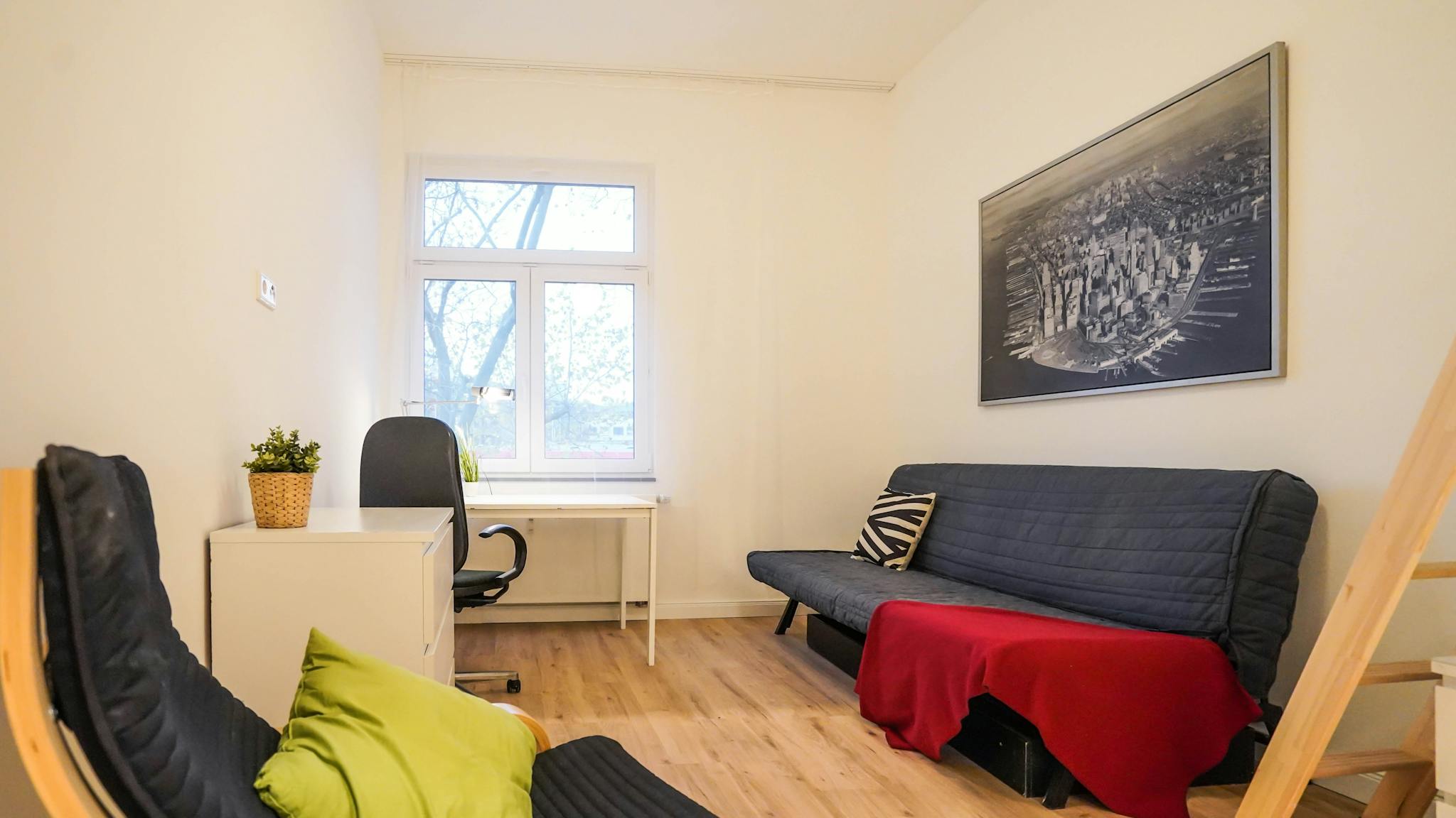 Das WG-Zimmer ist mit einem Hochbett ausgestattet und wird komplett möbliert vermietet.
