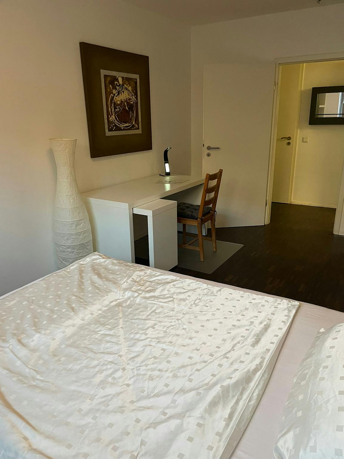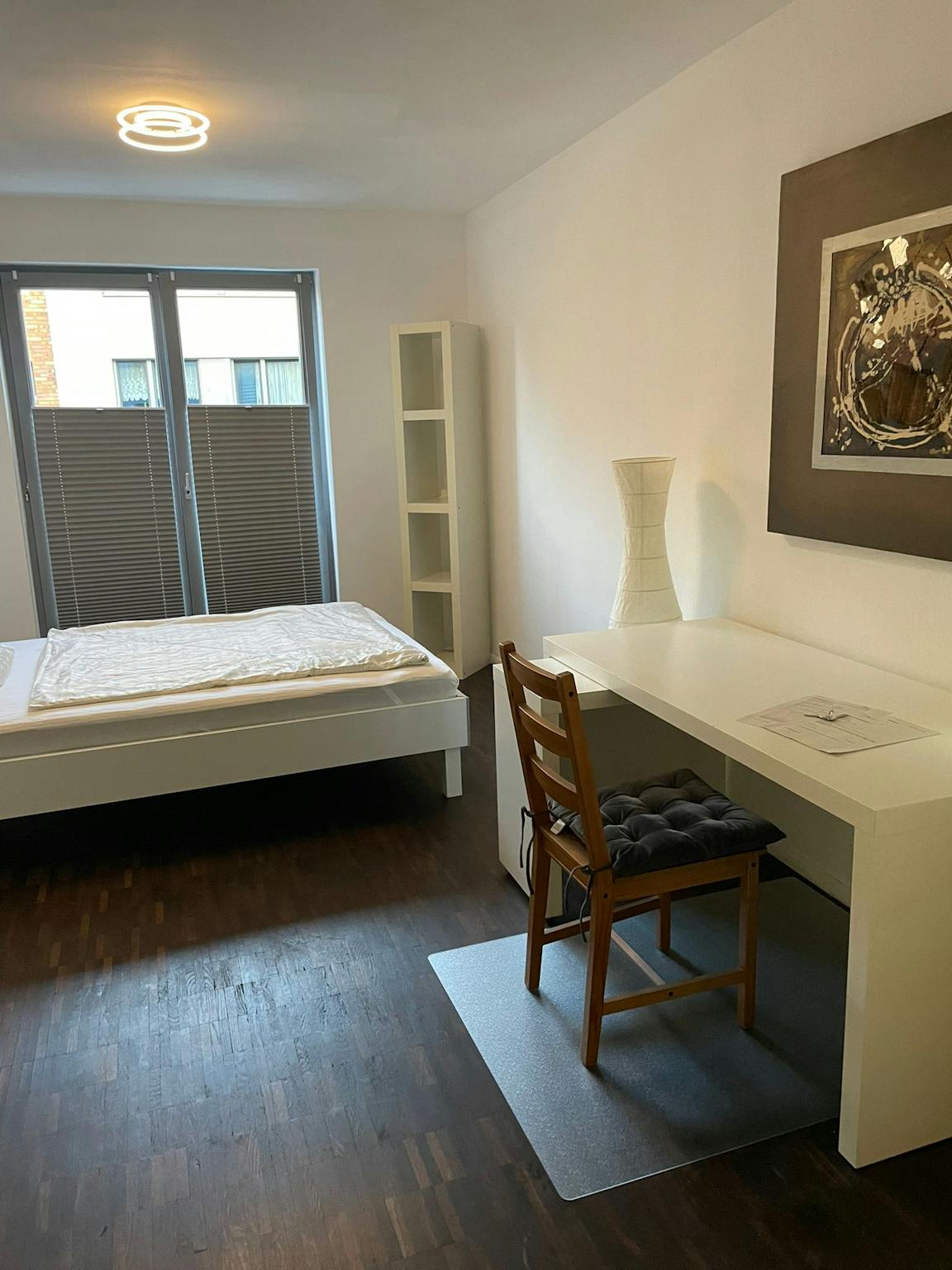 1 private room in a high-quality, fully furnished 5 room apartment in Cologne-Bickendorf (shared with 3 other people) General information: - Living room - 4 bedrooms - kitchen - bathroom with shower - separate WC - beds are at least 140cm - hallway - storeroom - 2nd floor - Sat TV, including high-speed internet line 100.000/10.000 kbit/s - Brand kitchen with dishwasher, ceramic stove top, oven, refrigerator and microwave oven - Washing machine in the cellar EURO 3,- per washing cycle - Floor: High-quality solid wood floor with underfloor heating, tiles in kitchen, bathroom and WC Convenient location at the border to Ehrenfeld, not far from Helmholtzplatz - short walking distance to the subway stop Rochusplatz (lines 3, 4) - suburban train and train connection via station Köln-Ehrenfeld - shopping possibilities nearby. The price is valid for 1 person. The photos are example photos of a similar apartment in the house as the apartment to be rented is currently still occupied. 1 Zimmer in hochwertiger und voll möblierter 5 Zimmer-Wohnung in Köln-Bickendorf (3 weitere Mitbewohner in WG) Generelle Ausstattung der Wohnung: - Wohnzimmer - 4 Schlafzimmer - Küche - Bad mit Dusche - separates WC - Betten mind. 140cm breit - Diele - Abstellraum - 1. Etage - Sat TV, inklusive High-Speed-Internetleitung 100.000/10.000 kbit/s - Markenküche mit Spülmaschine, Ceranfeld-Herd, Backofen, Kühlschrank und Mikrowelle - Waschmaschine im Keller EURO 3,- pro Waschgang - Fußboden: Hochwertiger Massivholzboden mit Fussbodenheizung, Fliesen in Küche, Bad und WC Verkehrsgünstige Lage an der Grenze zu Ehrenfeld, unweit vom Helmholtzplatz - kurze Gehentfernung zur U-Bahn-Haltestelle Rochusplatz (Linien 3, 4) - S-Bahn- und Zuganbindung über Bahnhof Köln-Ehrenfeld - Einkaufsmöglichkeiten in der Nähe Der Preis gilt für eine Person Die Fotos sind Beispielfotos eines ähnlichen Apartments in dem Haus da die zu mietende Wohnung aktuell noch belegt ist.