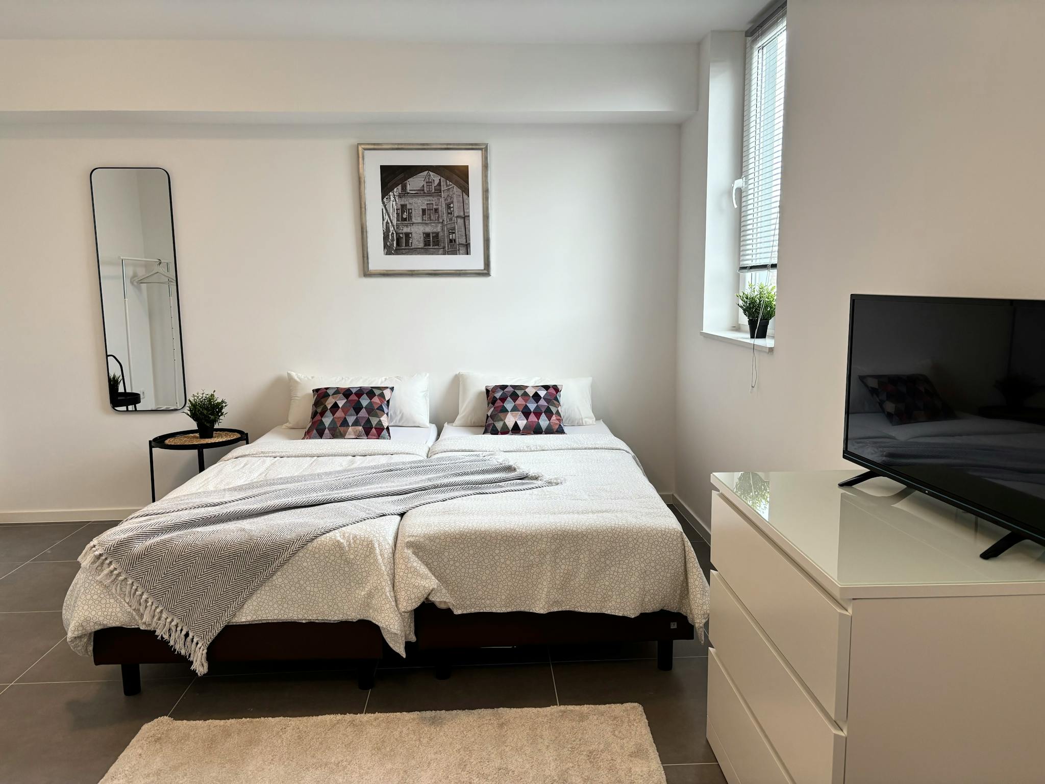 1. In dem Zimmer befinden sich 2 Betten (80*2000) oder ein großes Bett für zwei Personen (1600*2000).