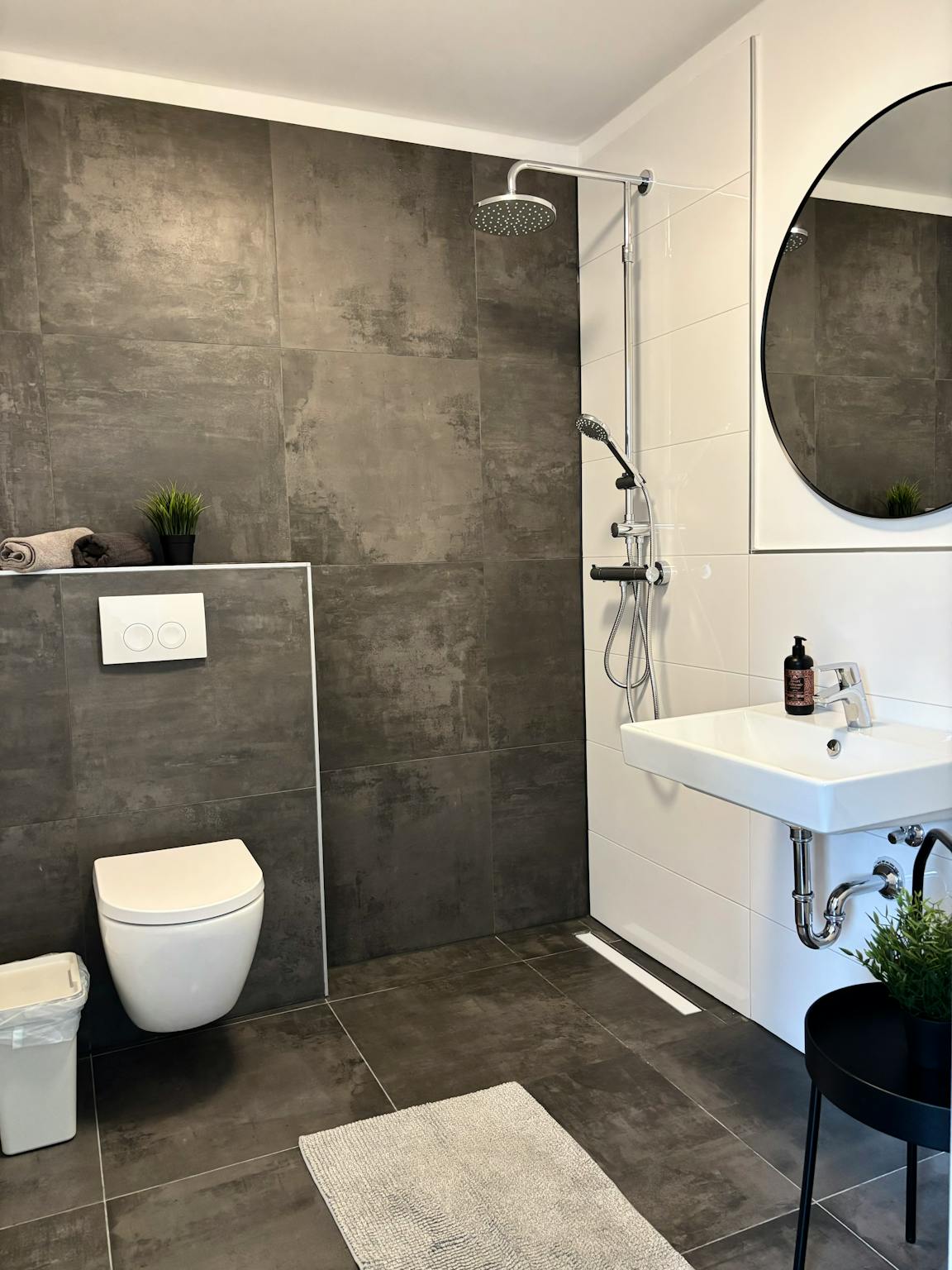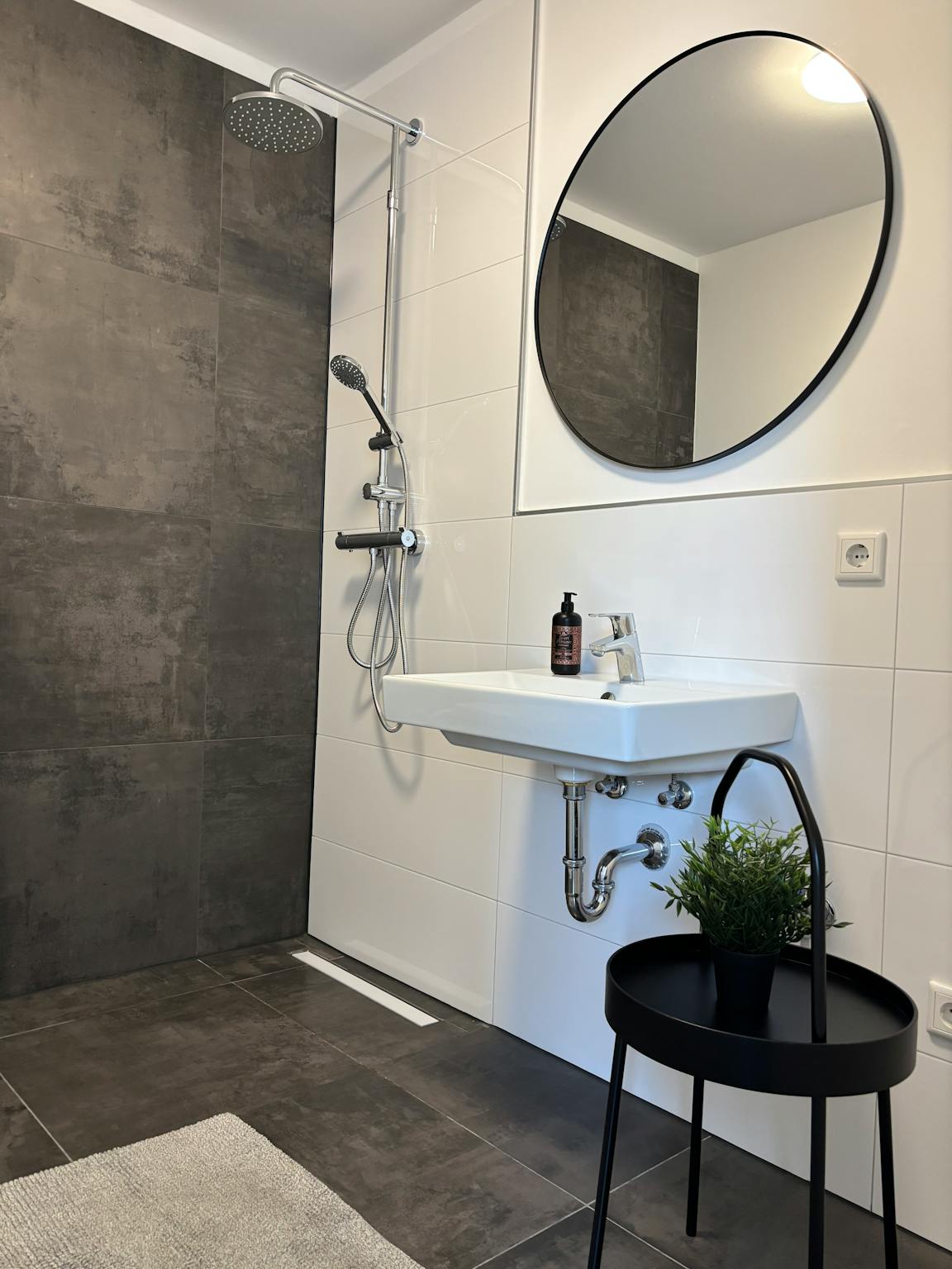 7. Badezimmer mit einer Duschkabine oder einer Badewanne.