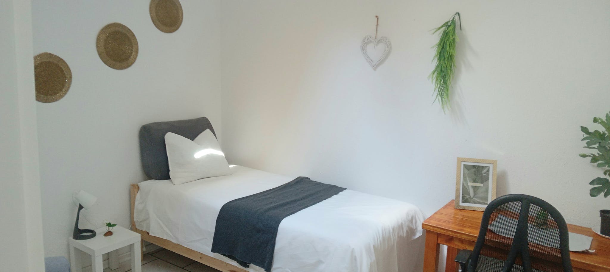 Vermietet werden in einem Bungalowhaus Zimmer mit Gemeinschaftsküche