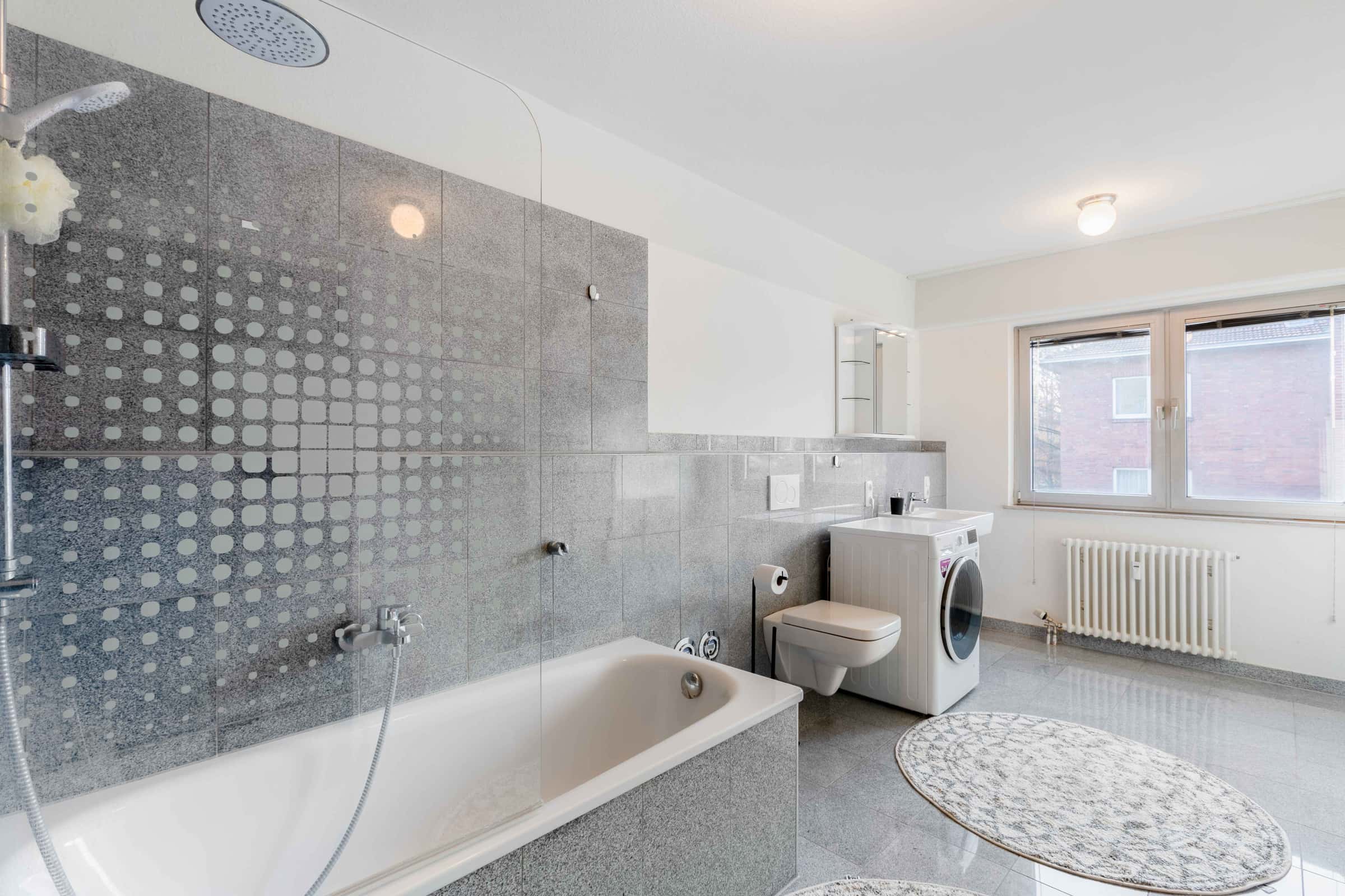 Live peacefully in the middle of a lively quarter in Cologne, lined with shops, cinemas, restaurants, and excellent traffic connections. The flat convinces with a Community balcony in the kitchen. It has two bathrooms, one major bathroom, and one guest bathroom.