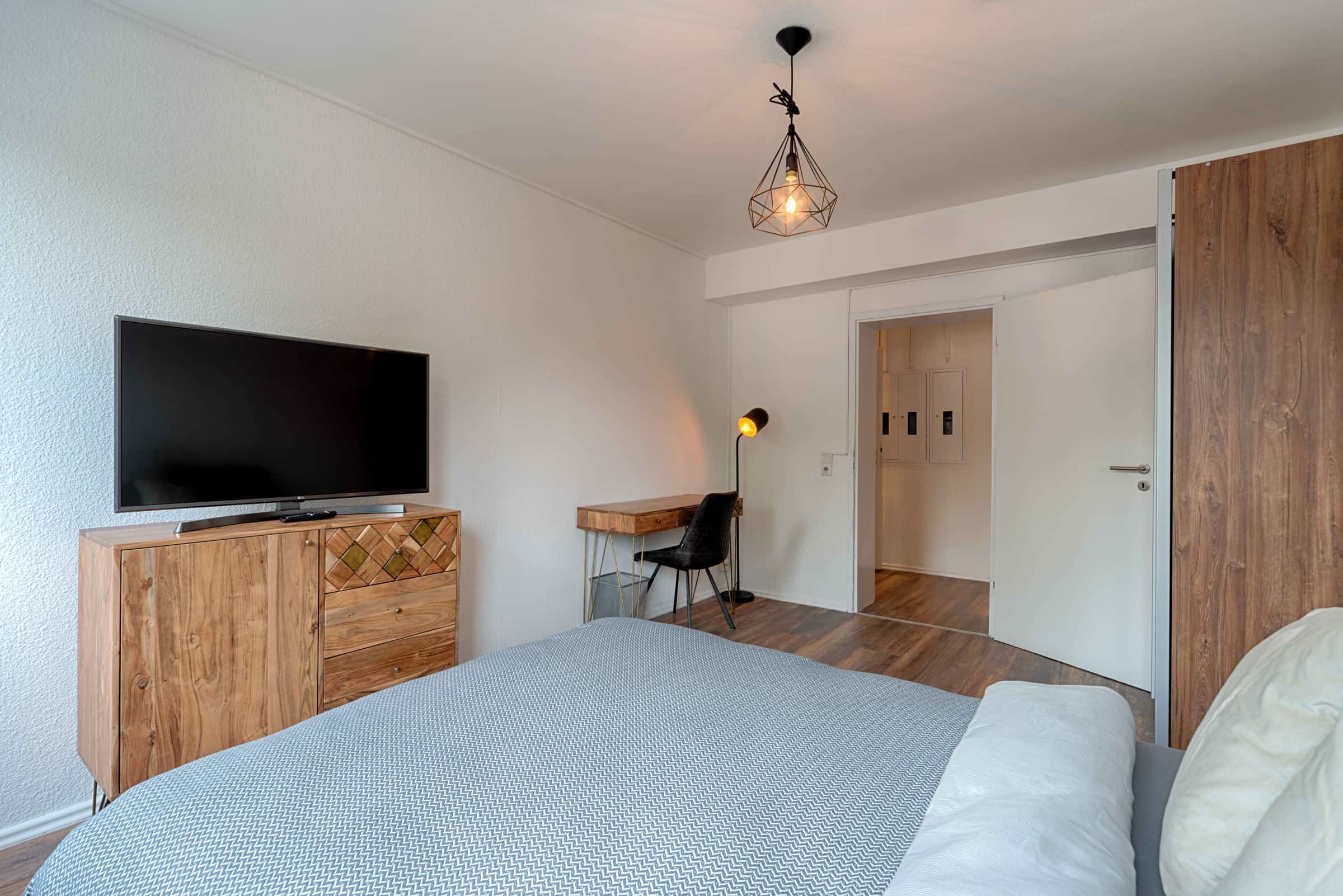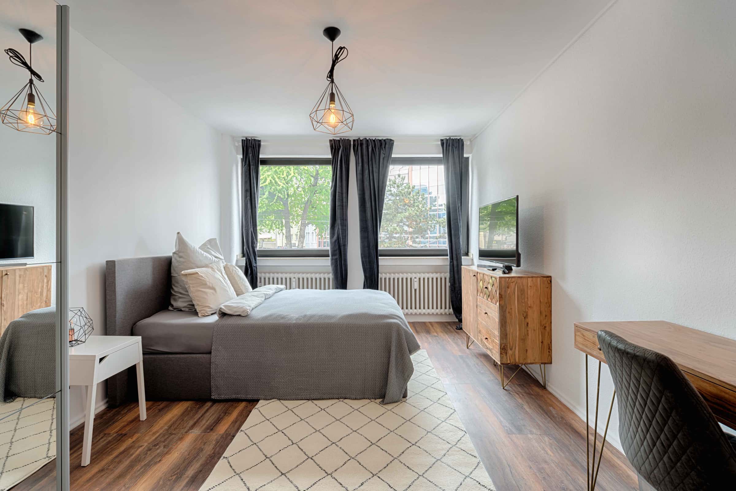 Our flats fulfil all your daily living requirements. Every flat comes readily equipped with a kitchen, including refrigerator, cooking equipment and dishes. Flats also include a washing machine and Wi-Fi Internet. Each room is fully furnished and offers a comfortable bed with fresh linen and a workspace. The area provides you with several shopping opportunities and excellent connections to public transport.