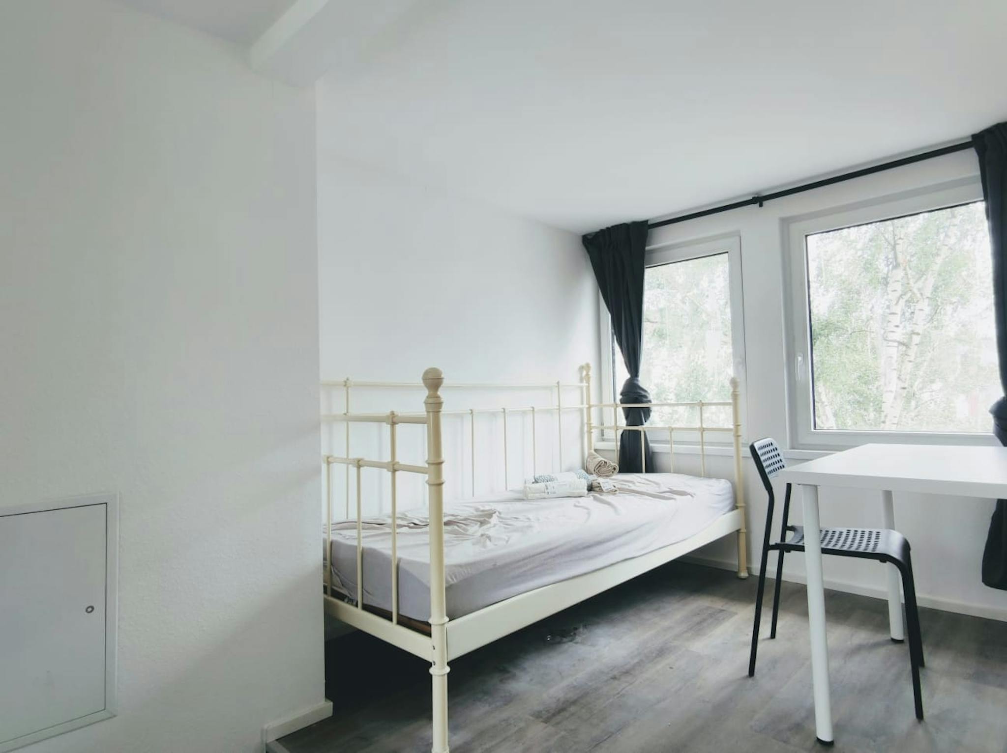 Spacious 7-Room Flatshare in Innenstadt-West, Dortmund This well-furnished shared apartment offers a comfortable living space in a central location. Apartment Features: Fully Furnished Rooms: Each room (10-15 m2) includes a bed, desk, chair, and wardrobe. Shared Spaces: Fully equipped kitchen with a cooktop, electric kettle, fridge, and kitchenware. Bathroom and WC, shared by 7 flatmates. Additional Amenities: Wi-Fi available. Coin-operated washing machine in the basement (€2 per wash). Location: Excellent Public Transport: Well-connected by subway and bus, ensuring easy access to other parts of the city. Shops & Amenities Nearby: Supermarkets, cafés, pharmacies, and other shopping facilities are within walking distance. Close to City Center: Dortmund’s pedestrian zone and main attractions are just a short walk away, making this apartment perfect for students and professionals. TU Dortmund University can be reached in about 25–35 minutes by public transport. Additional Information: Tenants are responsible for maintaining cleanliness during their stay. A one-time membership fee of €76 applies. Upon move-out, tenants must pay a mandatory bed linen fee of €30 and a cleaning fee of €130.