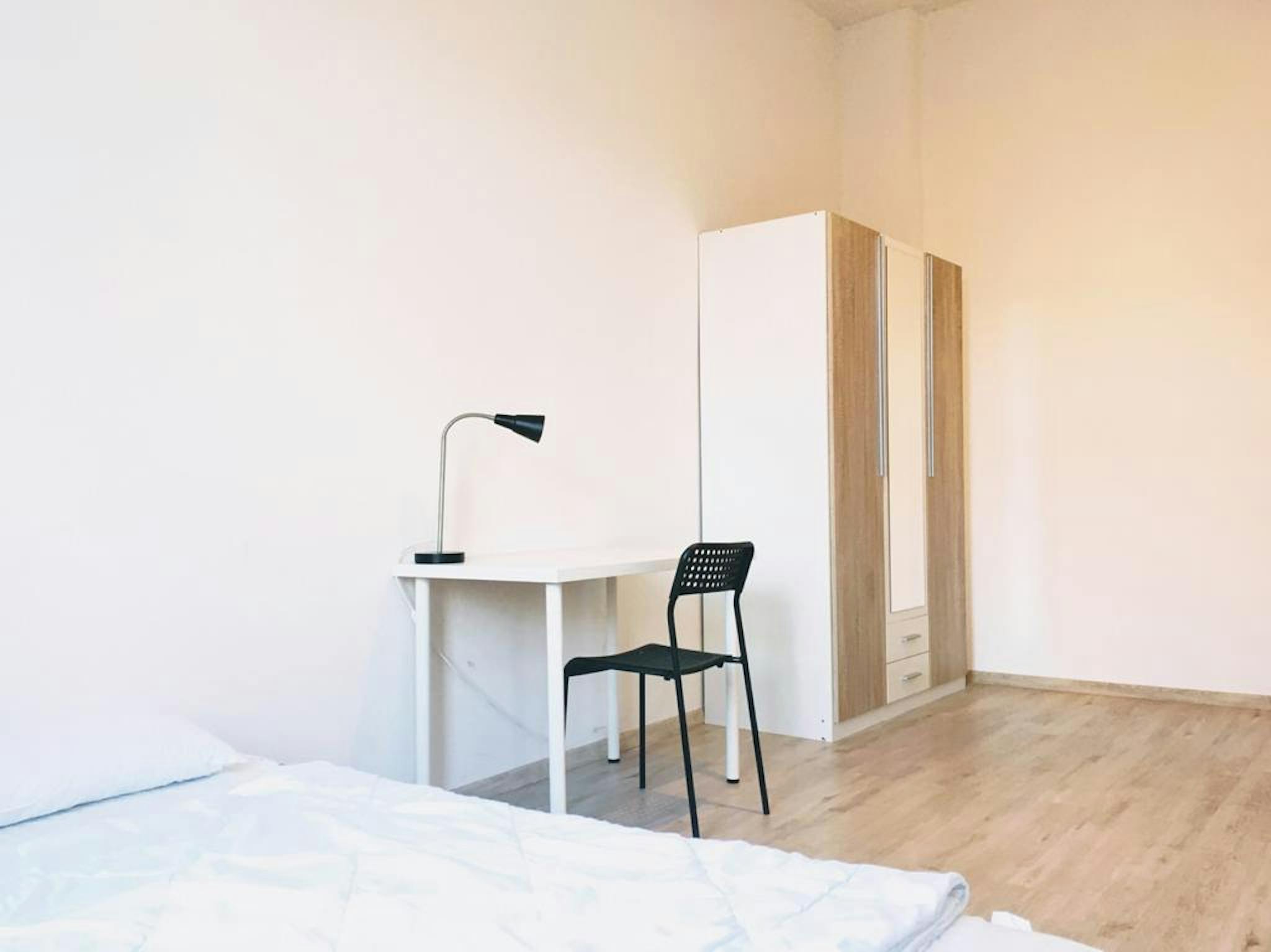 Fully furnished rooms, including a bed, desk, wardrobe, and lamp.