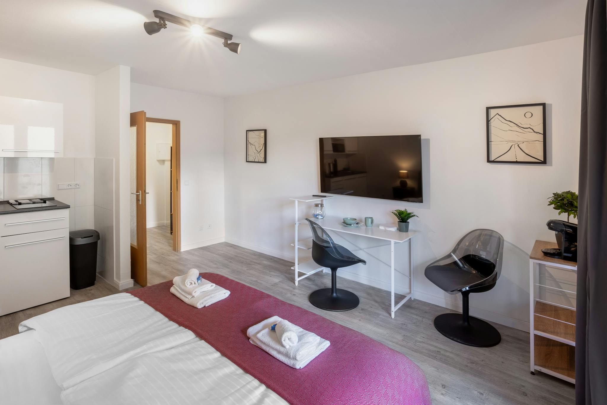 Non-SmokingNot allowedEntspanntes Wohnen im Grünen: Dieses ruhige Studio-Apartment mit Blick auf den Garten verspricht Erholung pur. Genieße den eigenen Balkon, Parkplatz & eine vollausgestattete Küche. Mit dem modernen TV endet dein Tag gemütlich. Die Straßenbahn direkt vor der Tür bringt dich in 15 Min. in die Stadtmitte oder zum Hauptbahnhof. Der Flughafen ist ebenfalls nur 15 Autominuten entfernt – ideal für Studenten und Business-Reisende, die eine ruhige Oase mit schneller Anbindung suchen.