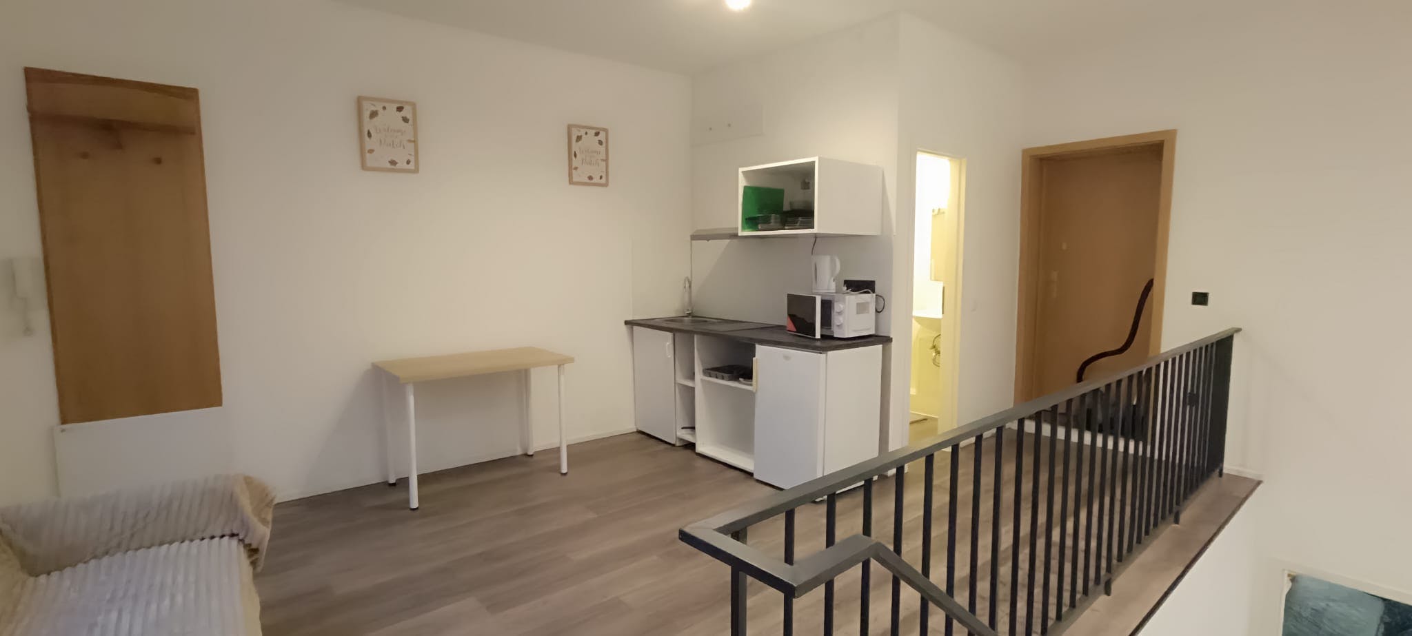 This 25 m2 apartment offers a comfortable living space in an excellent location near Südbad, with great public transport connections and nearby shopping facilities.