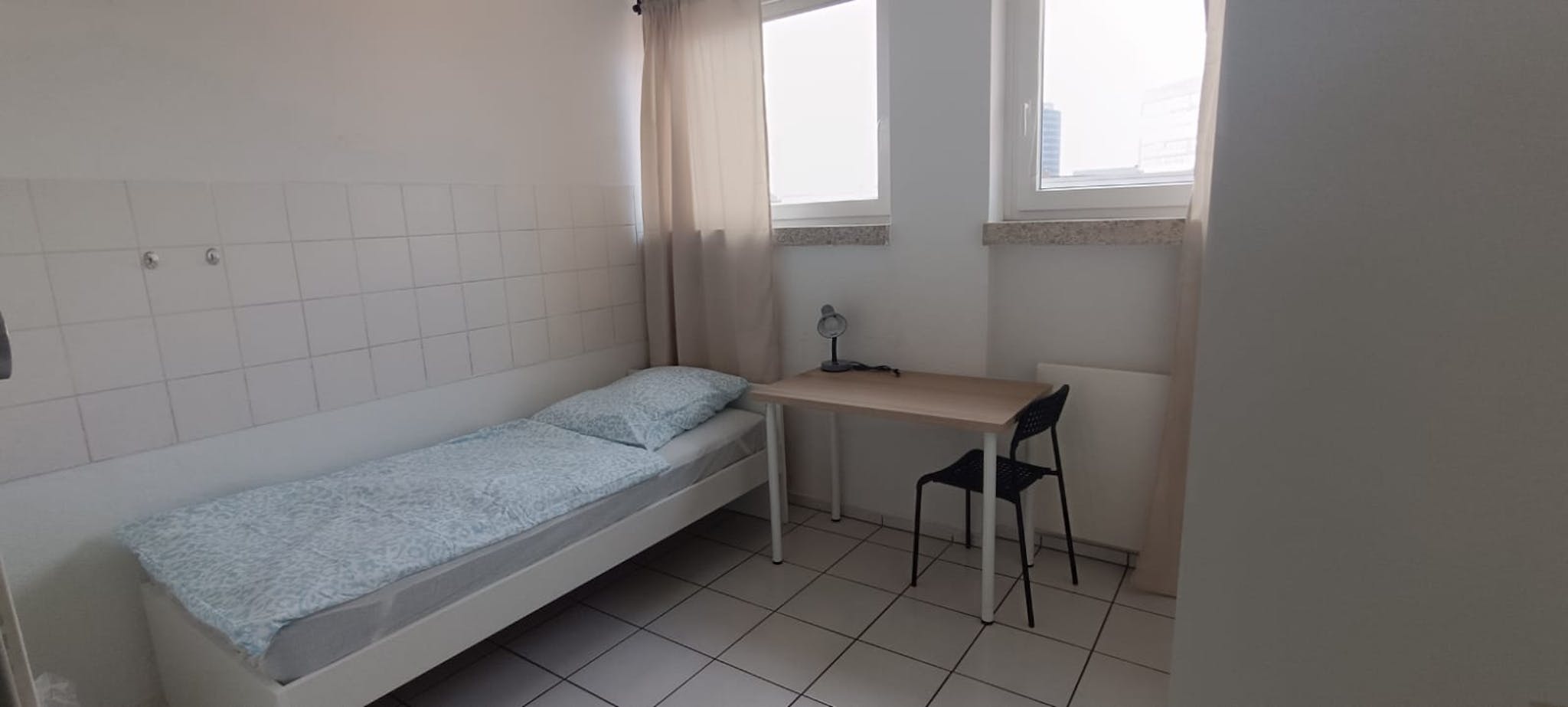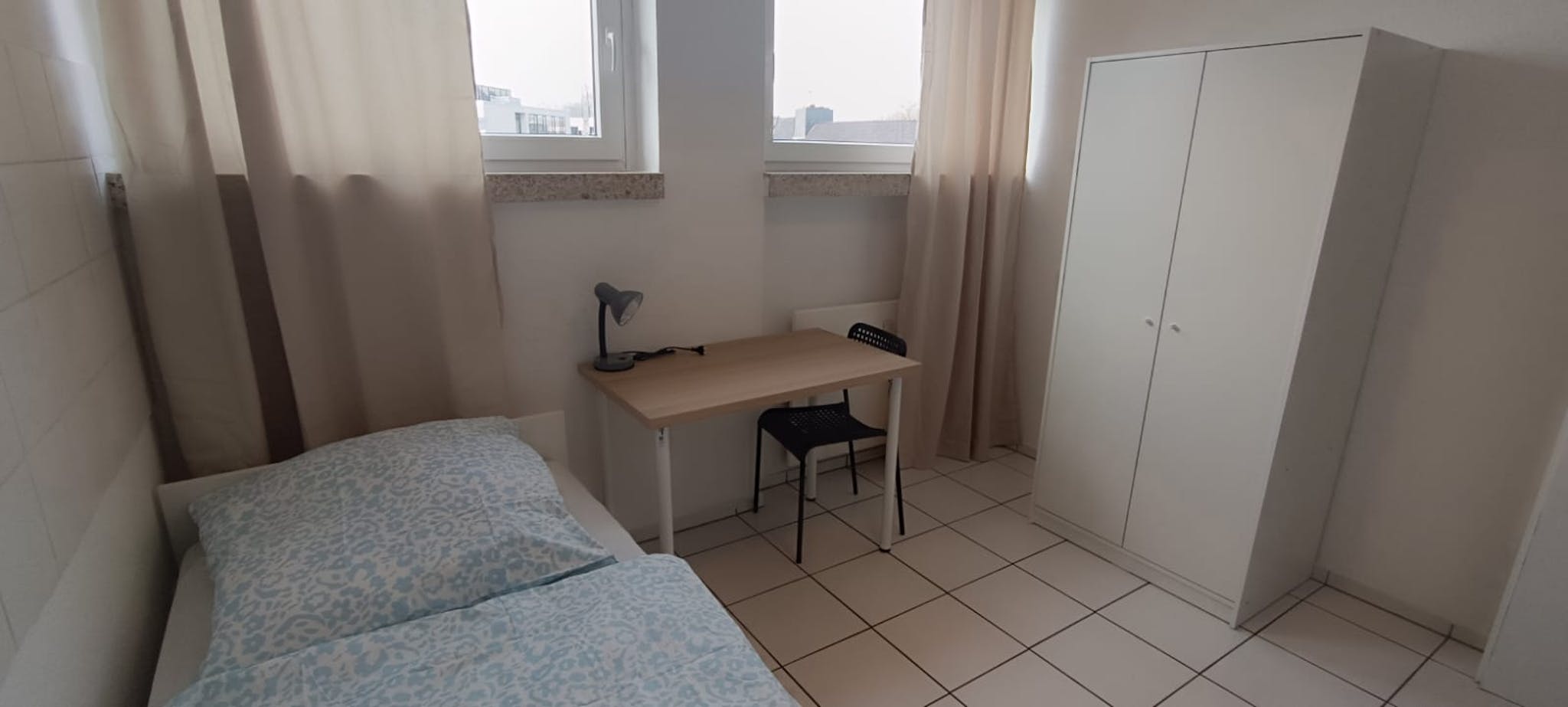 Fully Furnished Rooms: Each room includes a bed, work table, chair, and wardrobe.