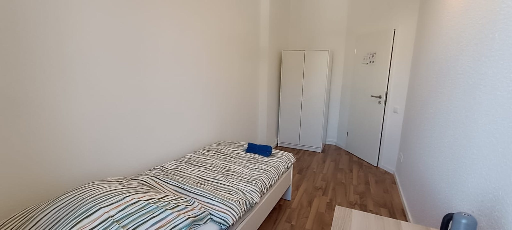 Spacious 10-Room Flatshare – Fully Furnished This well-equipped flatshare offers a comfortable and convenient living space. Flatshare Features: 10 fully furnished rooms with all essential furniture. Shared kitchen equipped with a fridge, oven, kettle, and kitchen utensils. 1 bathroom with shower shared among tenants. Coin-operated washing machine in the basement (€2 per wash). Located on the 1st floor with easy access. Location: Prime location in the pedestrian zone with numerous shopping options nearby. Excellent public transport connections. Main Station just 10 minutes away on foot. TU Dortmund university can be reached by public transport in about 25–35 minutes. Additional Information: Tenants are responsible for maintaining cleanliness during their stay. A one-time administration fee of €72 applies. Upon move-out, tenants must pay a mandatory bed linen fee of €30 and a cleaning fee of €130.