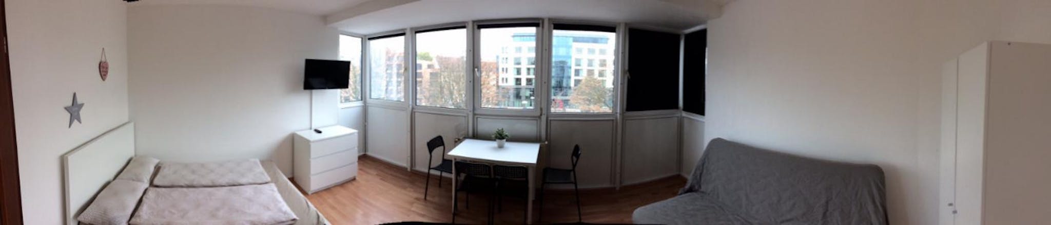 25 m2 living space, fully furnished with TV, WiFi, and a washing machine.