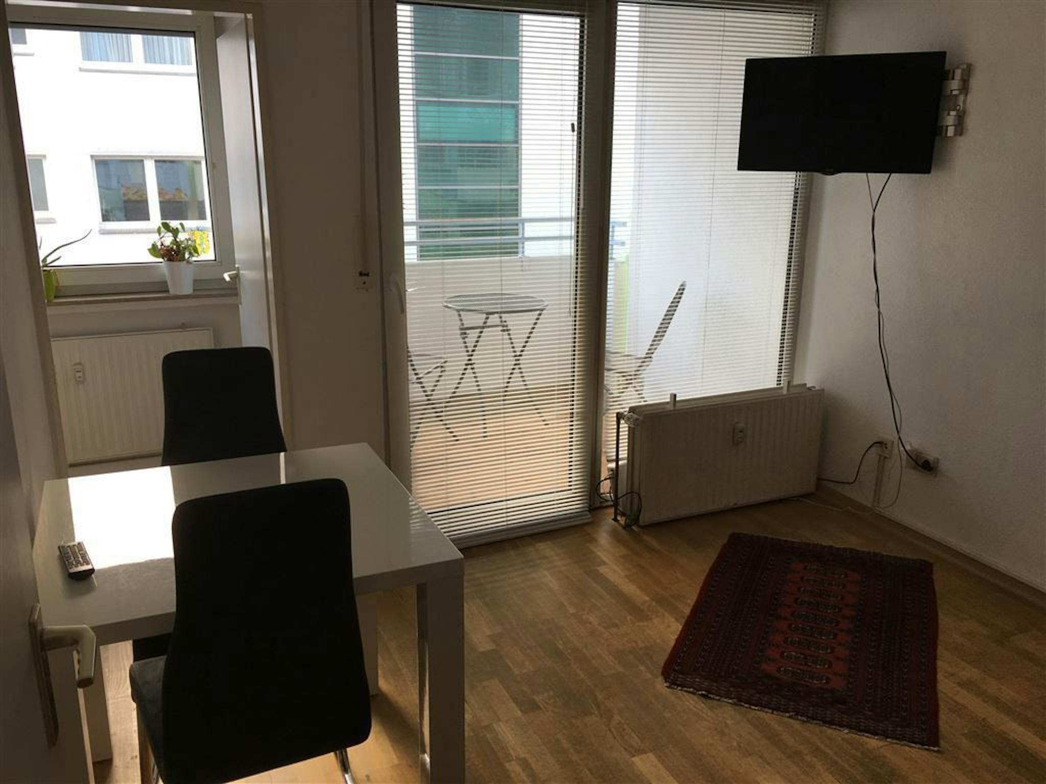 Non-SmokingNot allowedThe studio apartment is located on the third floor of an apartment building from the 1950s, which can be reached by elevator. It has its own modern bathroom, a fully equipped kitchenette and a balcony facing the concert hall.