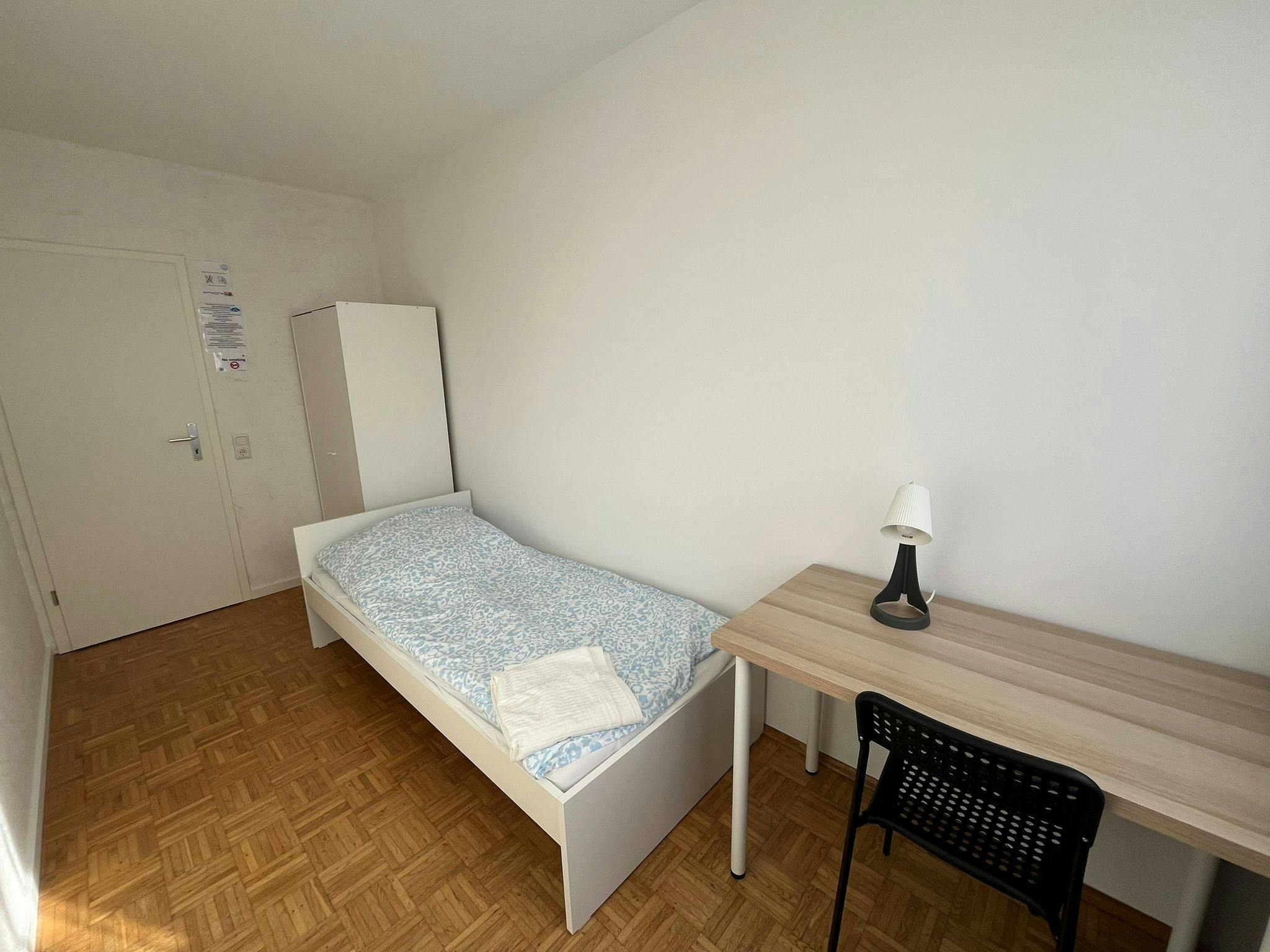Fully Furnished Rooms: Each room includes a bed, work table, chair, and wardrobe.
