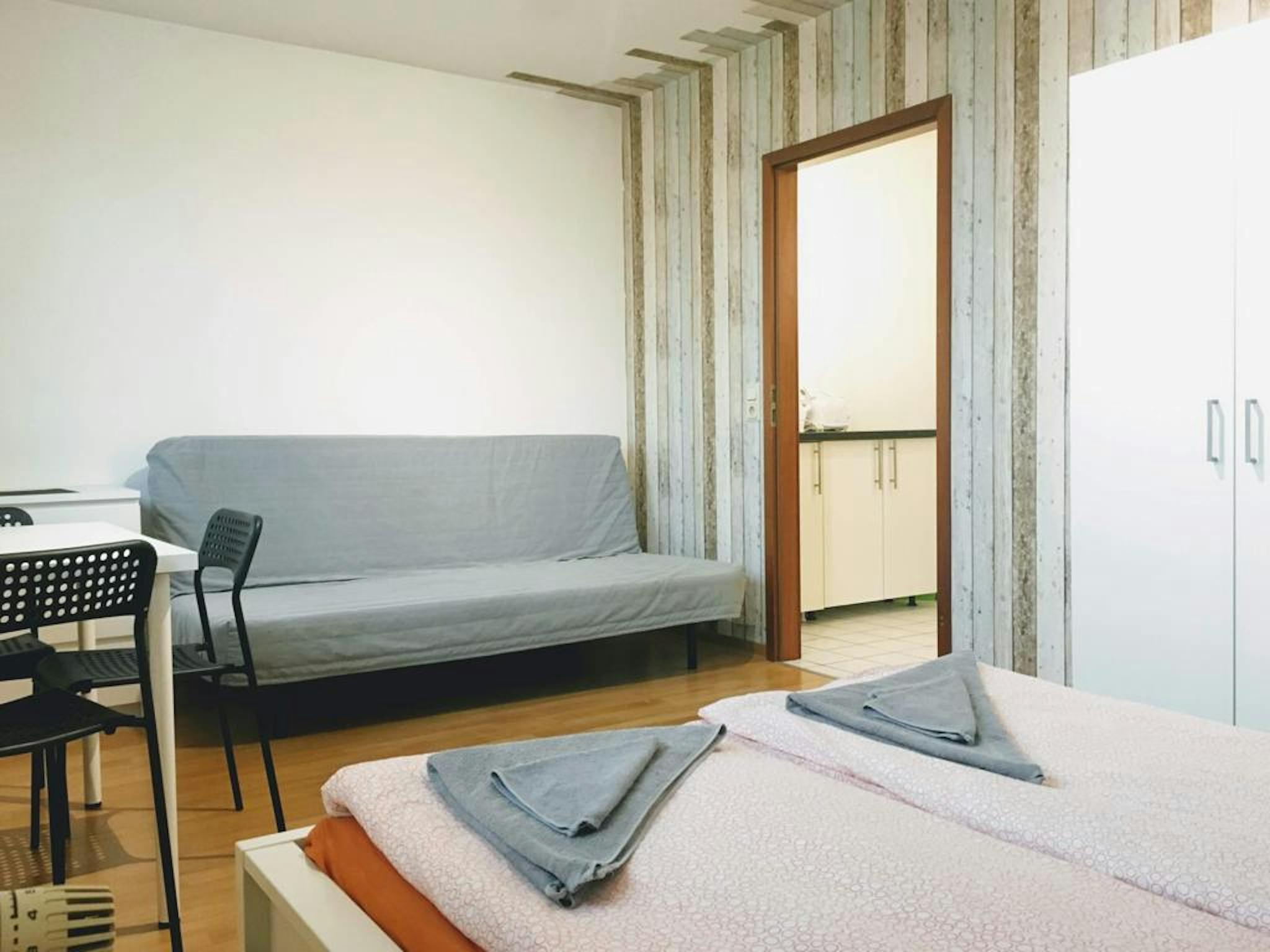 Cozy 25 m2 Apartment – Fully Furnished This fully furnished and well-equipped apartment offers everything you need for a comfortable stay. Apartment Features: 25 m2 living space, fully furnished with TV, WiFi, and a washing machine. Fully equipped kitchen with all necessary appliances. Location: Prime location in the pedestrian zone with numerous shopping options nearby. Excellent public transport connections. Main Station just 10 minutes away on foot. TU Dortmund university can be reached by public transport in about 25–35 minutes. Additional Information: Tenants are responsible for maintaining cleanliness during their stay. A one-time administration fee of €150 applies. Upon move-out, tenants must pay a mandatory bed linen fee of €30 and a cleaning fee of €130.