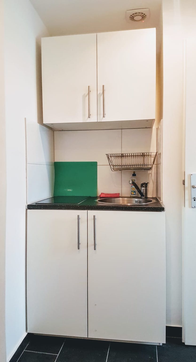 Shared kitchen and bathroom with WC, used by three flatmates in total.